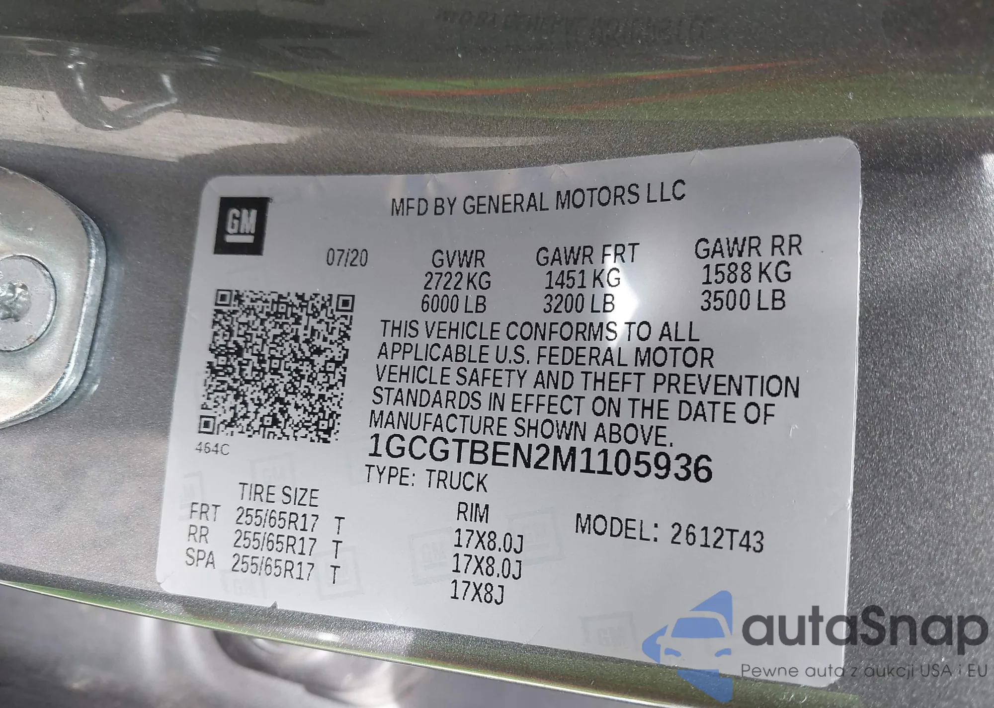 LOT: 42341533 VIN: 1GCGTBEN2M1105936