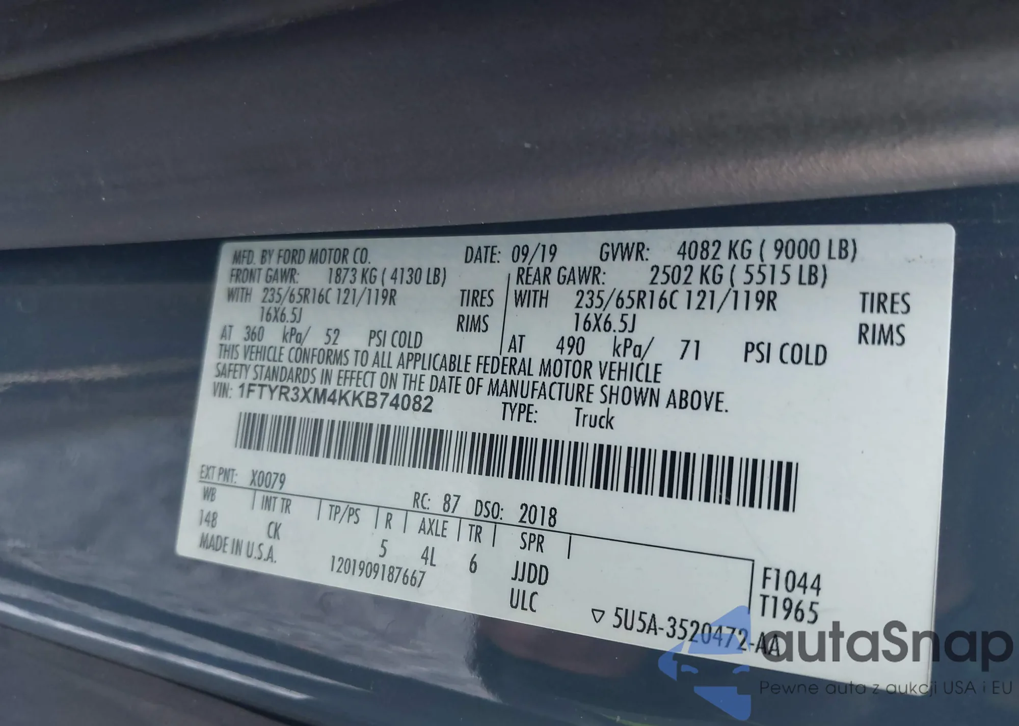 • VIN 1FTYR3XM4KKB74082