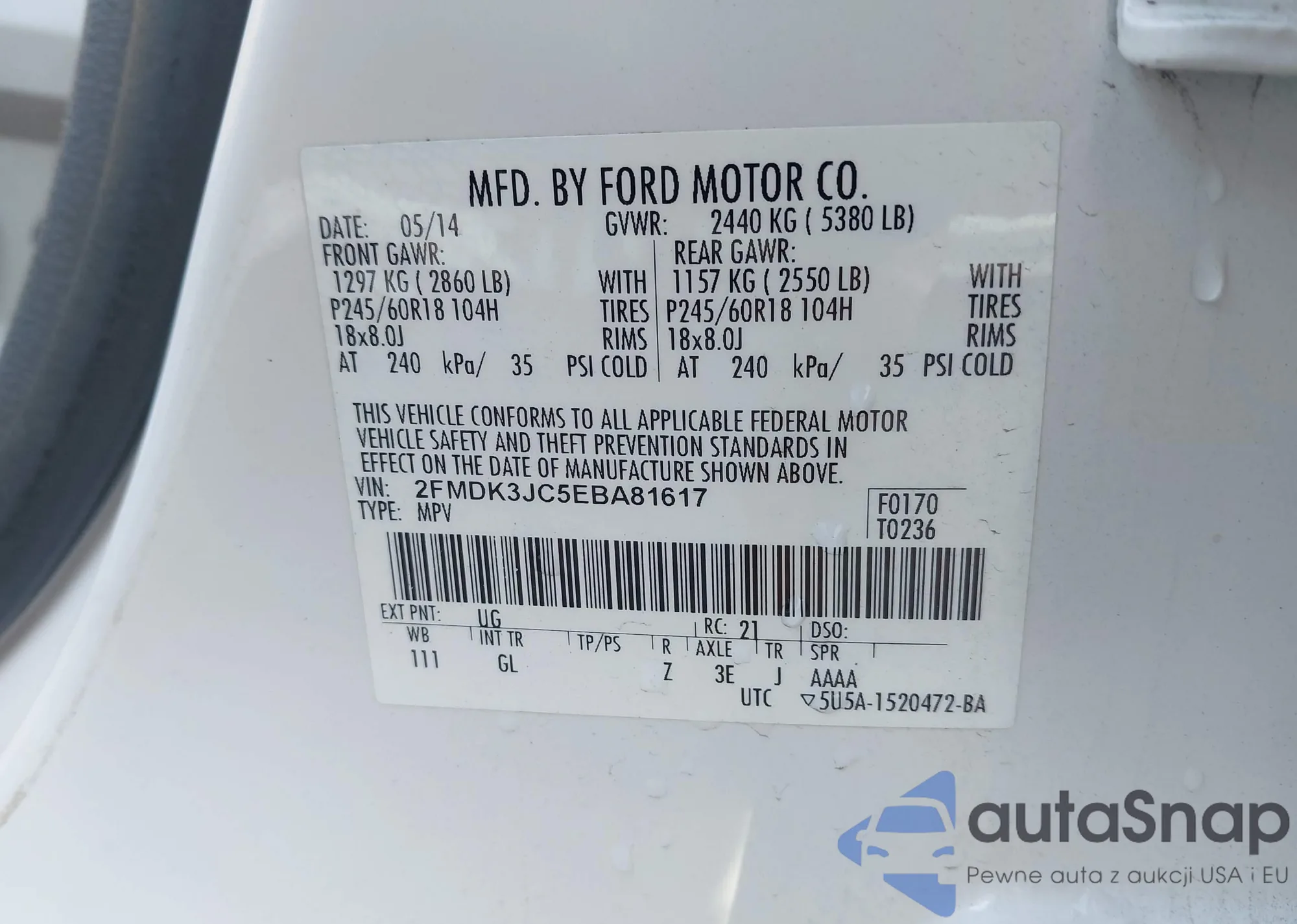 LOT: 41603075 VIN: 1FTYR3XM4KKB74082