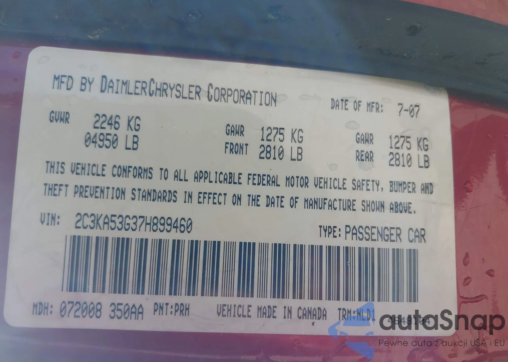 LOT: 42015282 VIN: 2C3KA53G37H899460