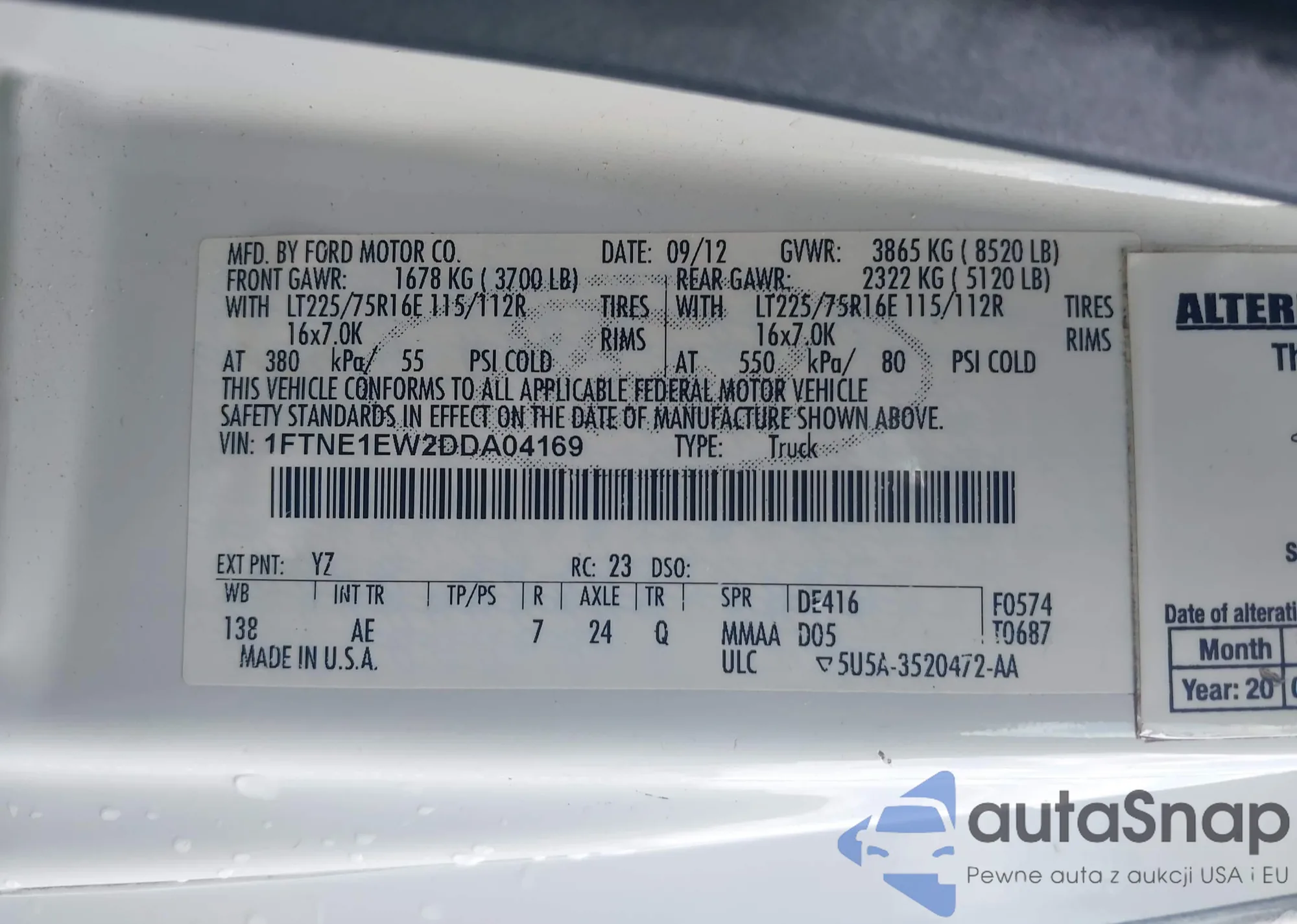 LOT: 42110332 VIN: 1FTNE1EW2DDA04169