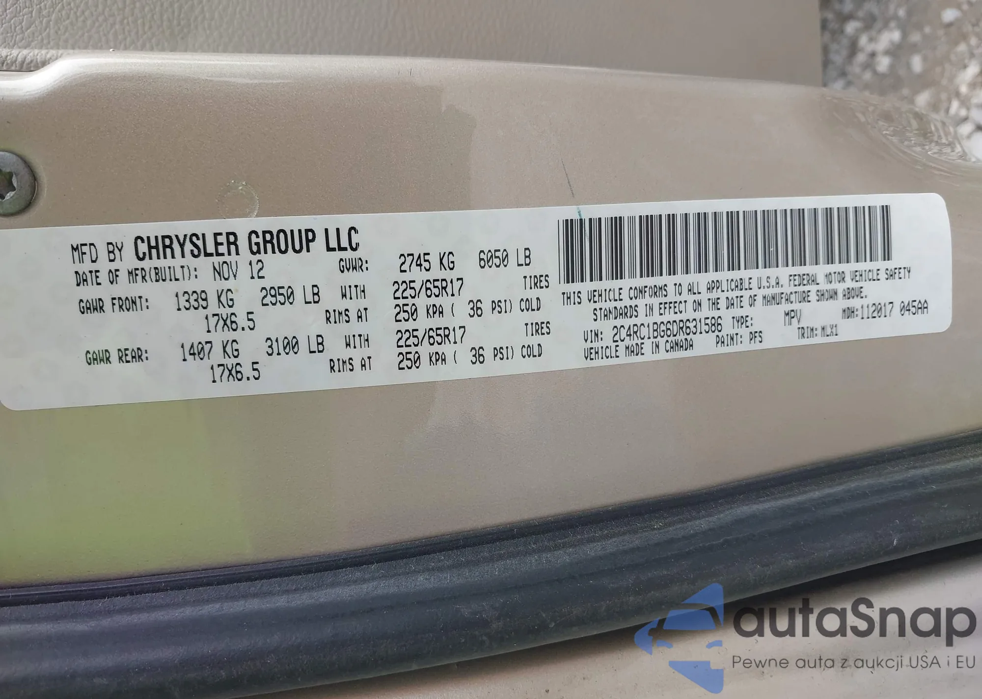 • VIN 2C4RC1BG6DR631586
