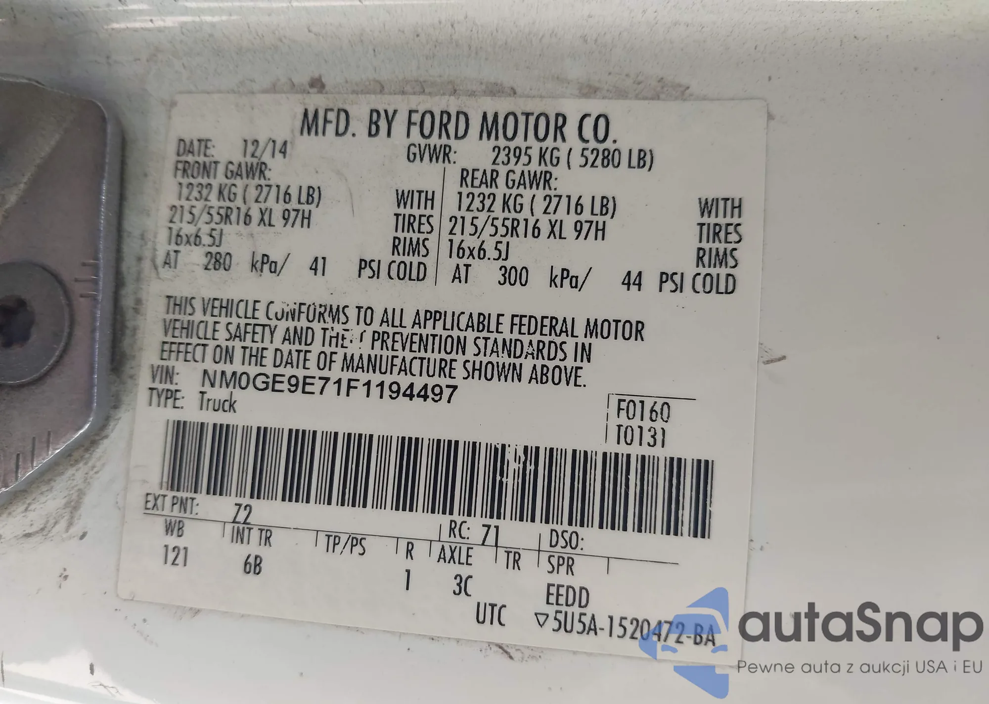 LOT: 42117422 VIN: NM0GE9E71F1194497