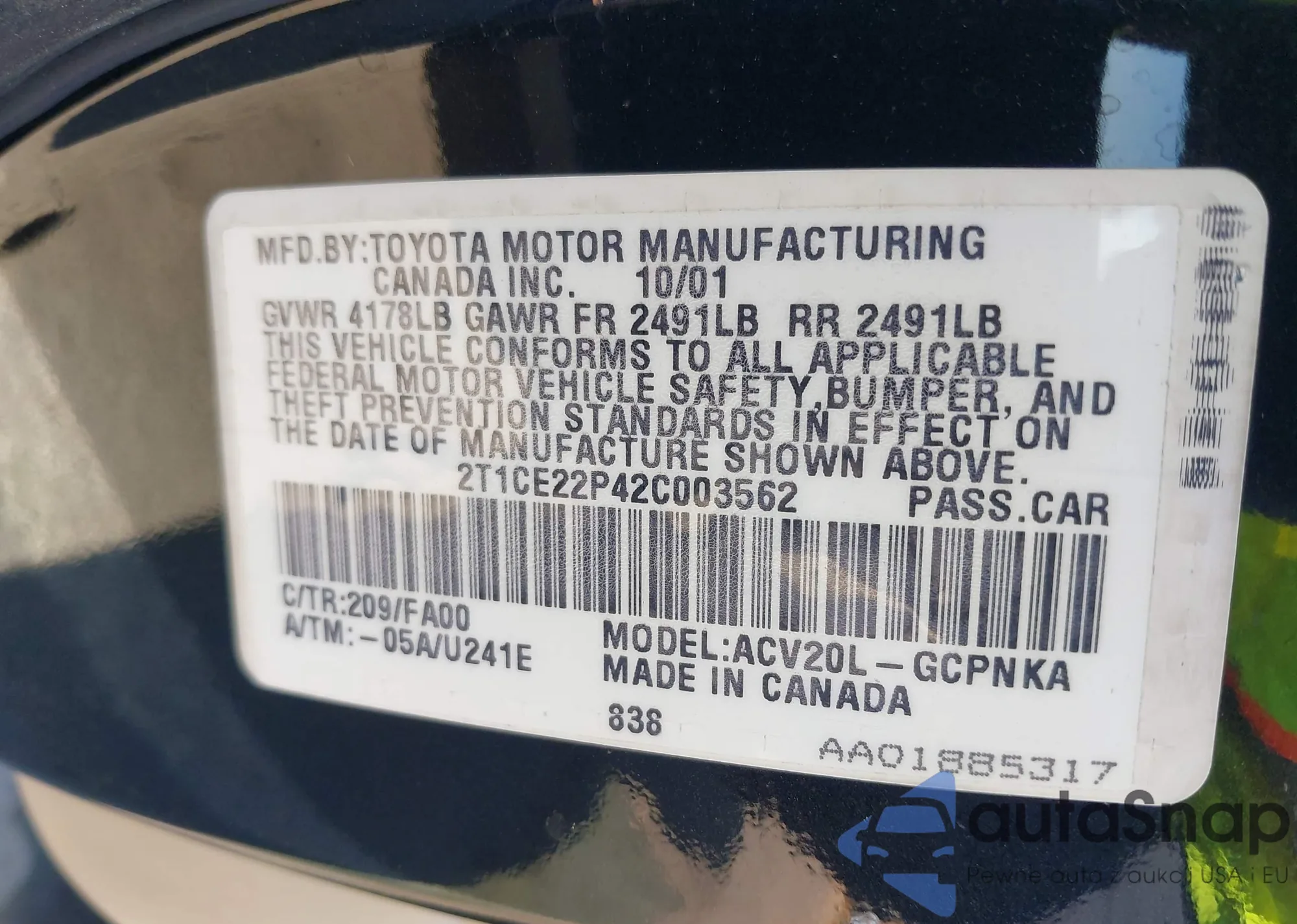 • VIN 4T1T11AK8MU470982