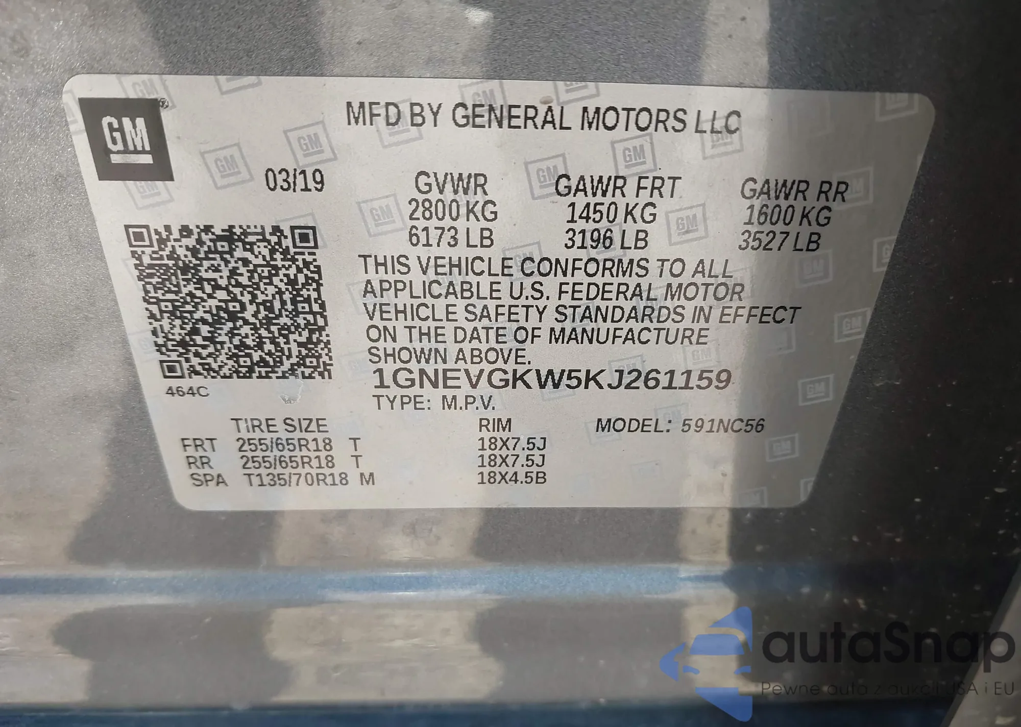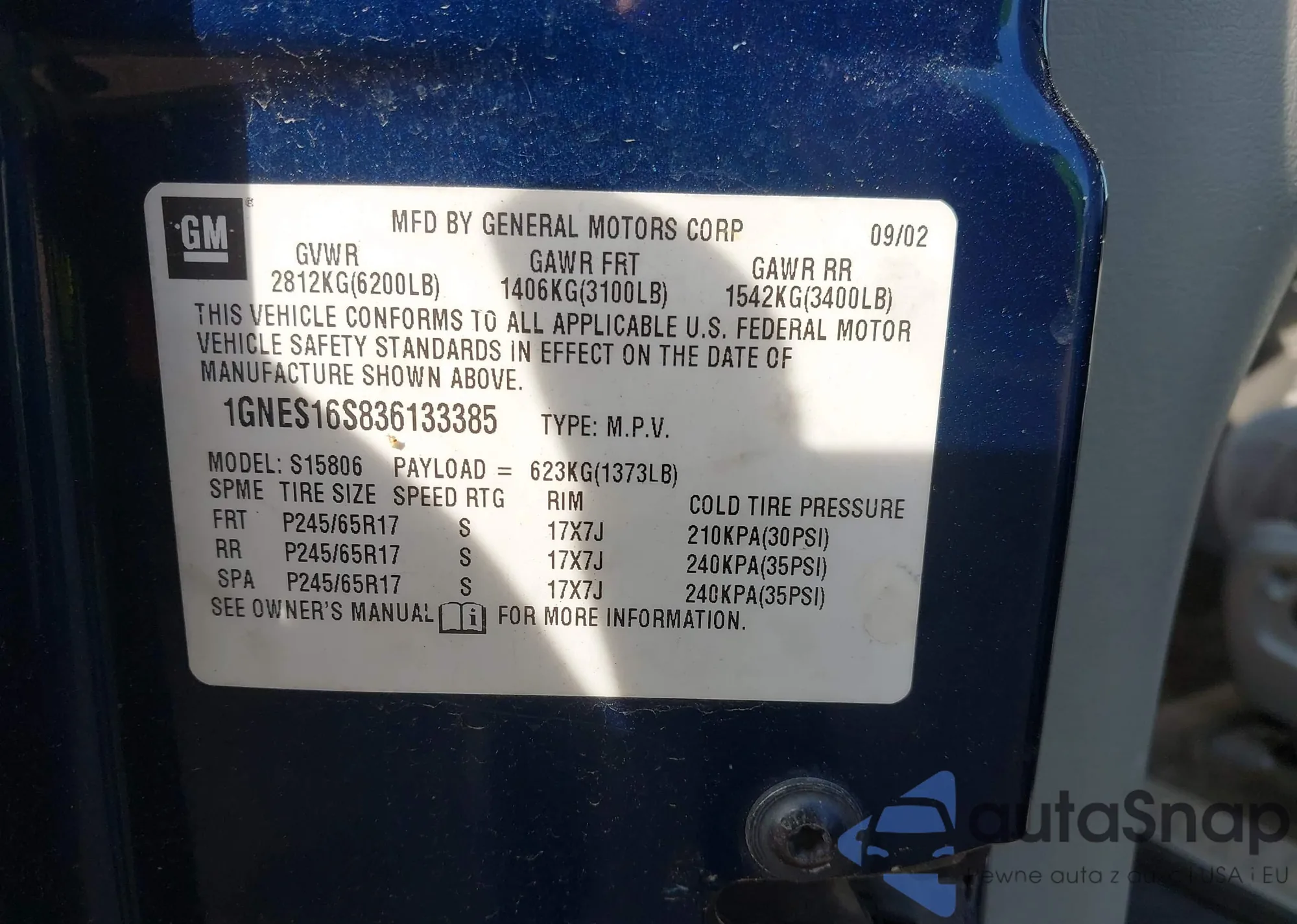 LOT: 42159058 VIN: 1GNES16S836133385