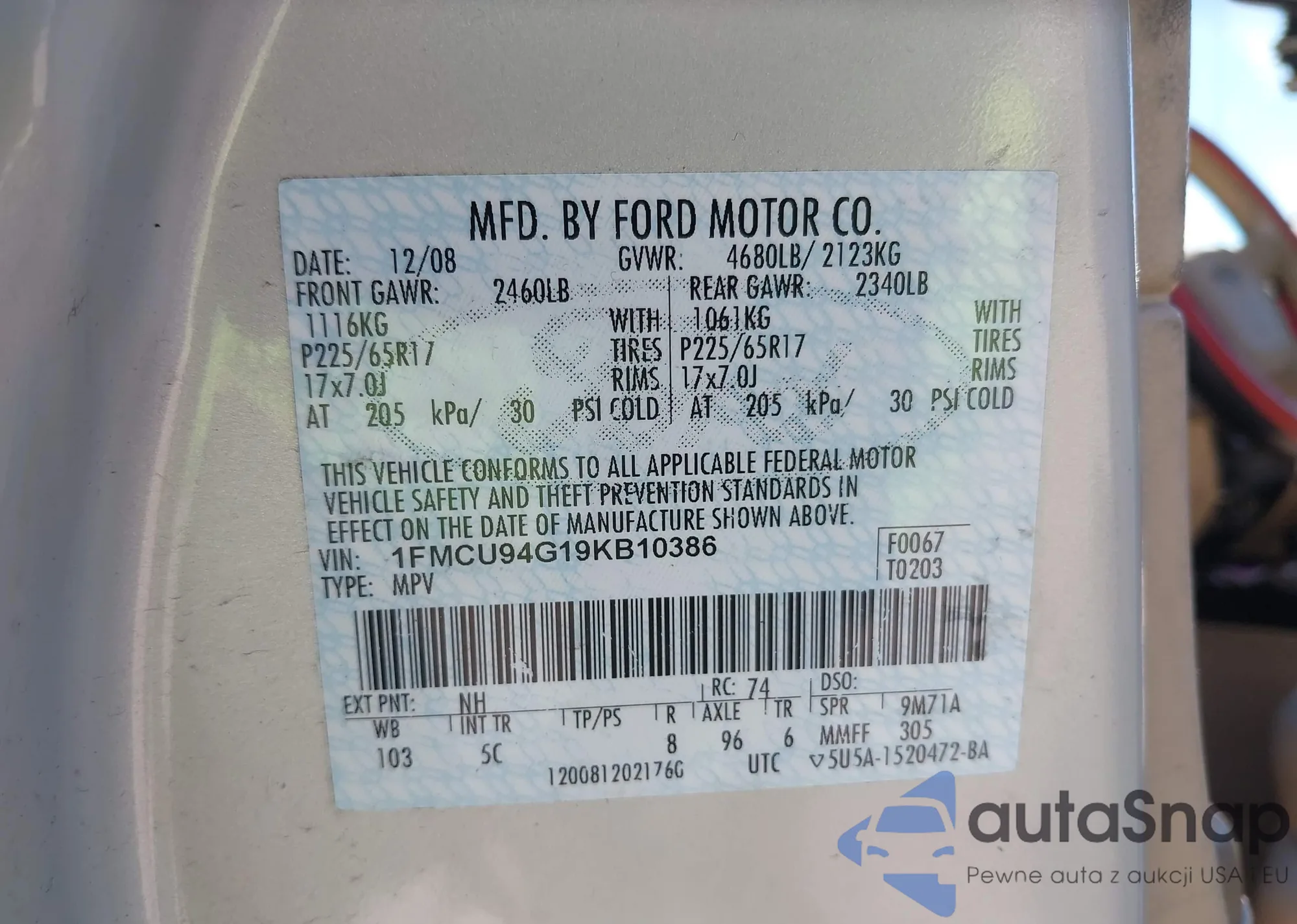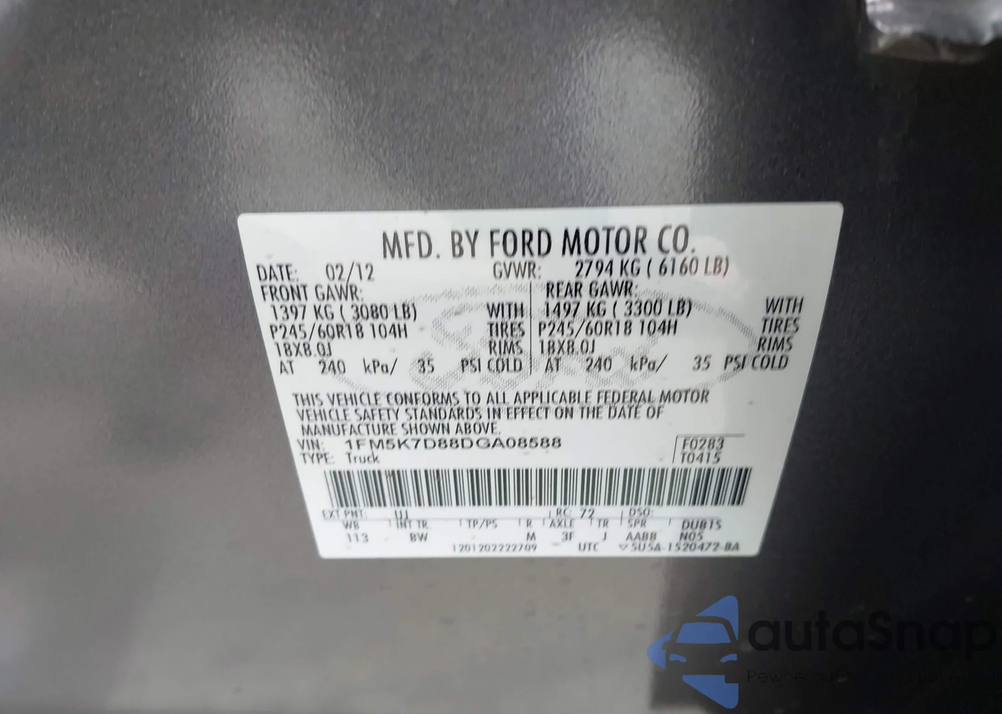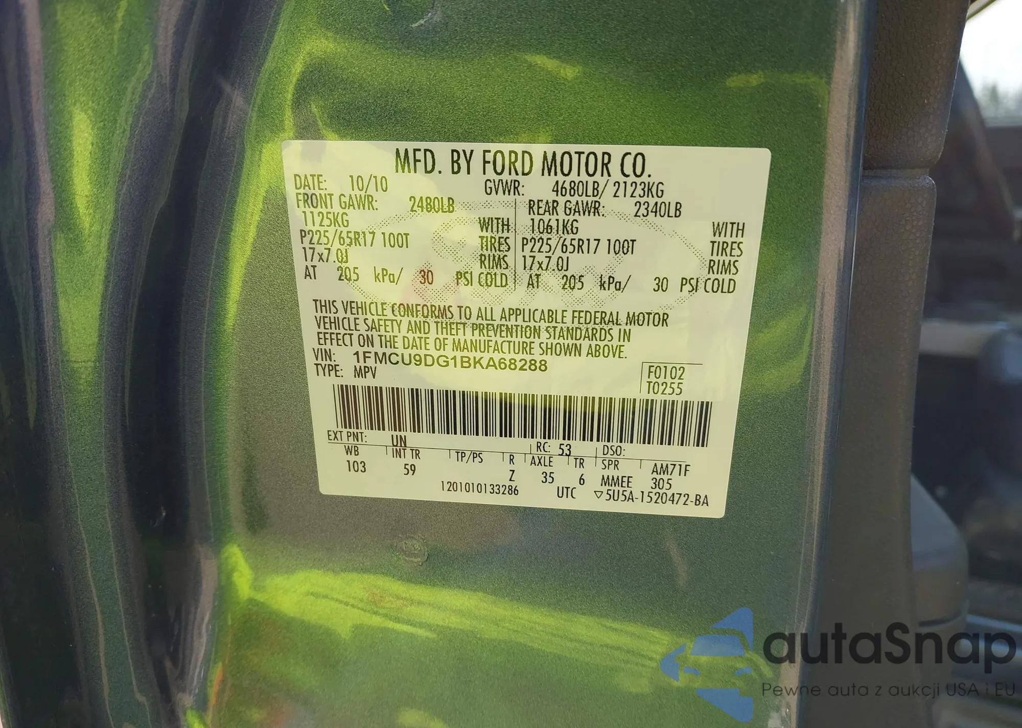 LOT: 42189502 VIN: 1FMCU9DG1BKA68288