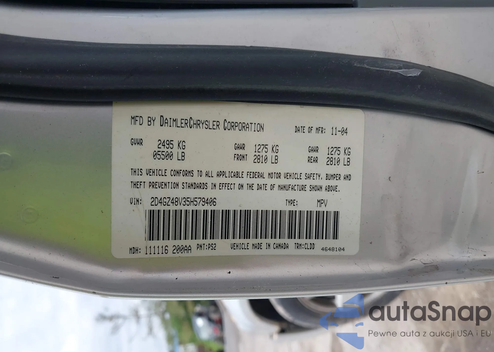 • VIN 2D4GZ48V358579406