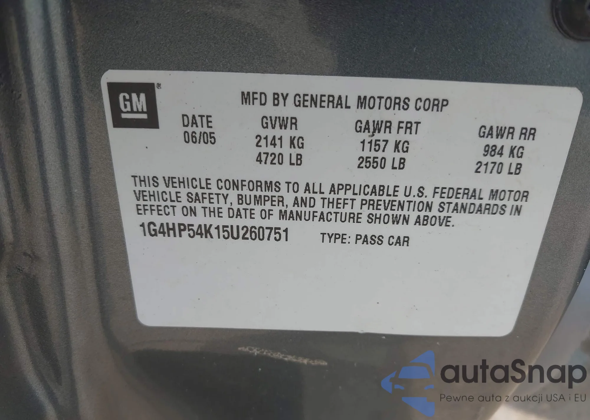 • VIN 1G4HP54K15U260751