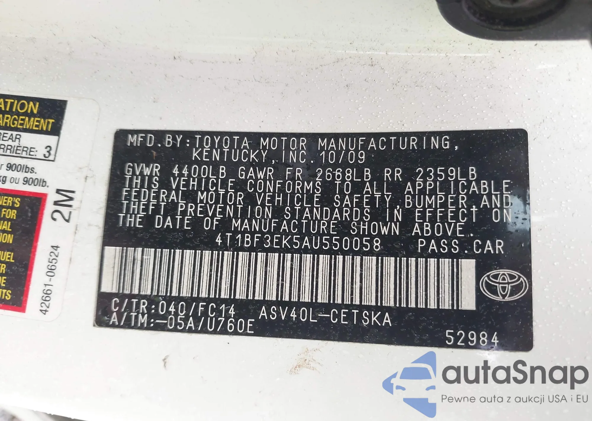 • VIN 4T1BF3EK5AU550058
