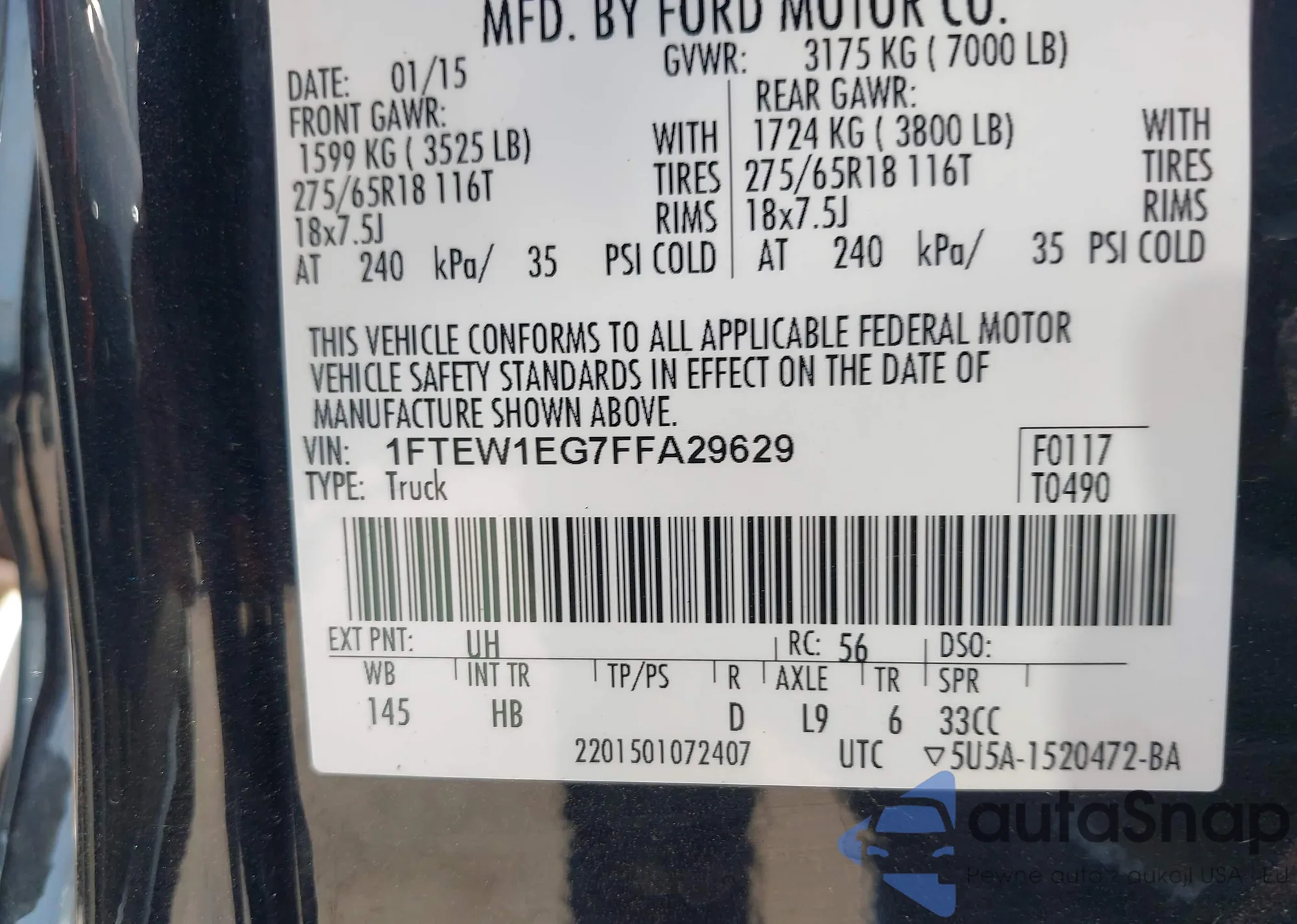 • VIN 1FTEW1EG7FFA29629