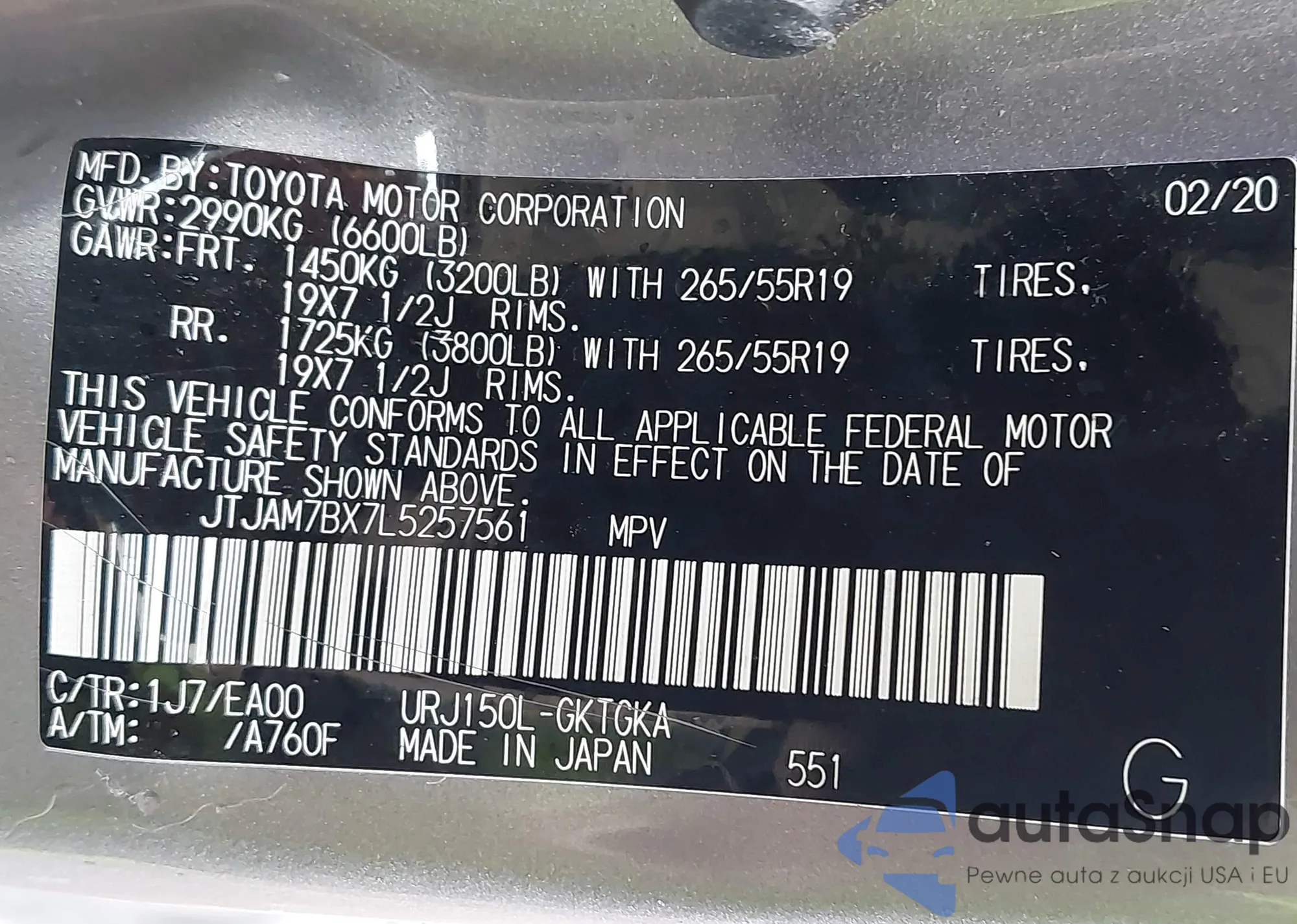 LOT: 41840981 VIN: JTJAM7BX7L5257561