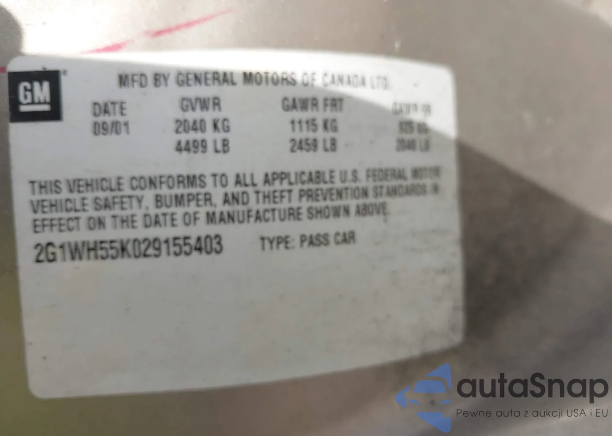 • VIN 2G1WH55K029155403