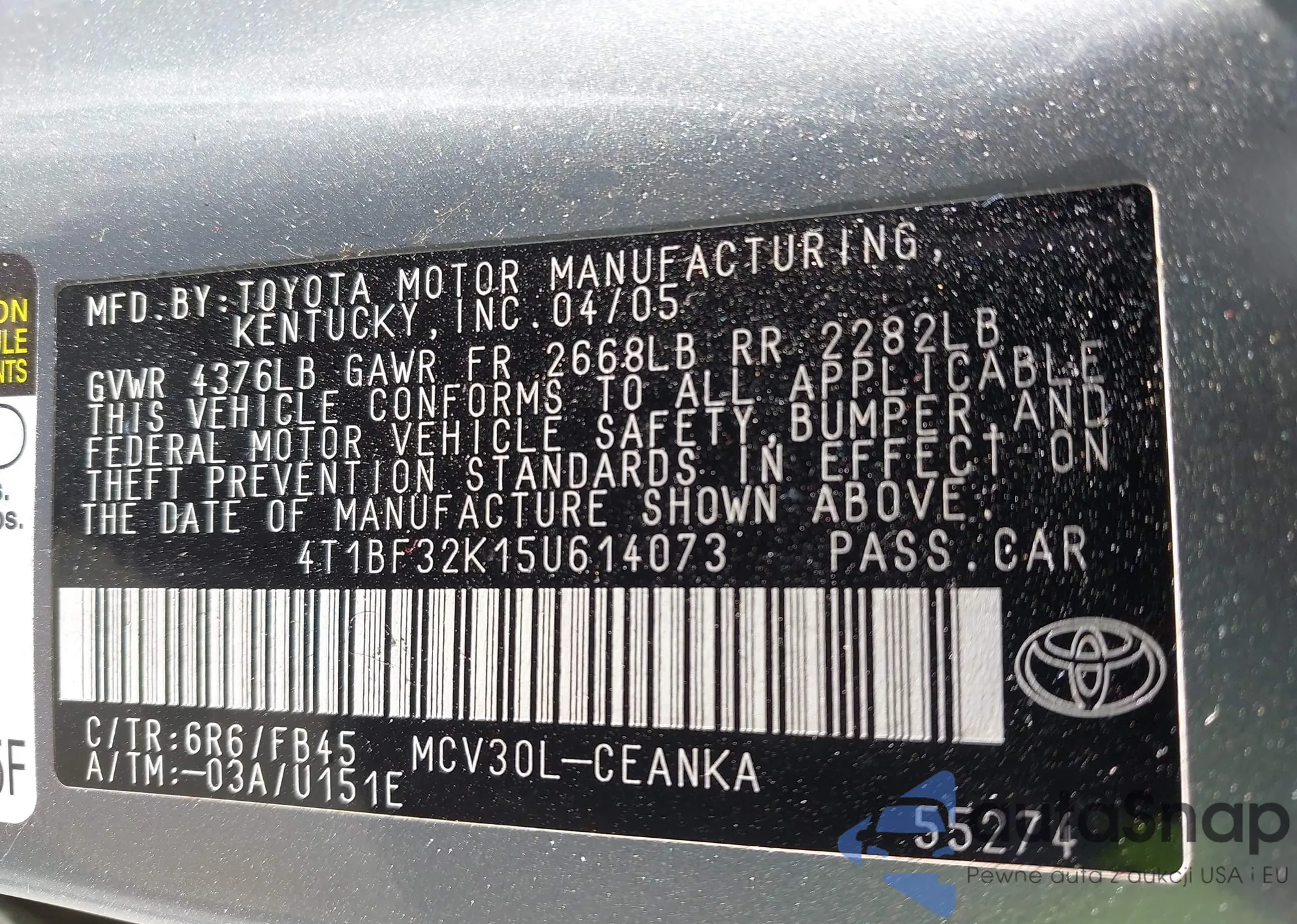• VIN 4T1BF32K15U614073