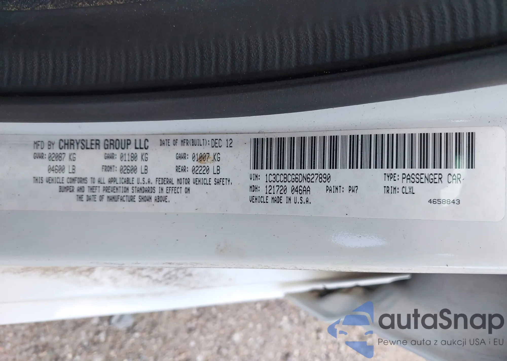 LOT: 42195826 VIN: 1C3CCBCG6DN627890