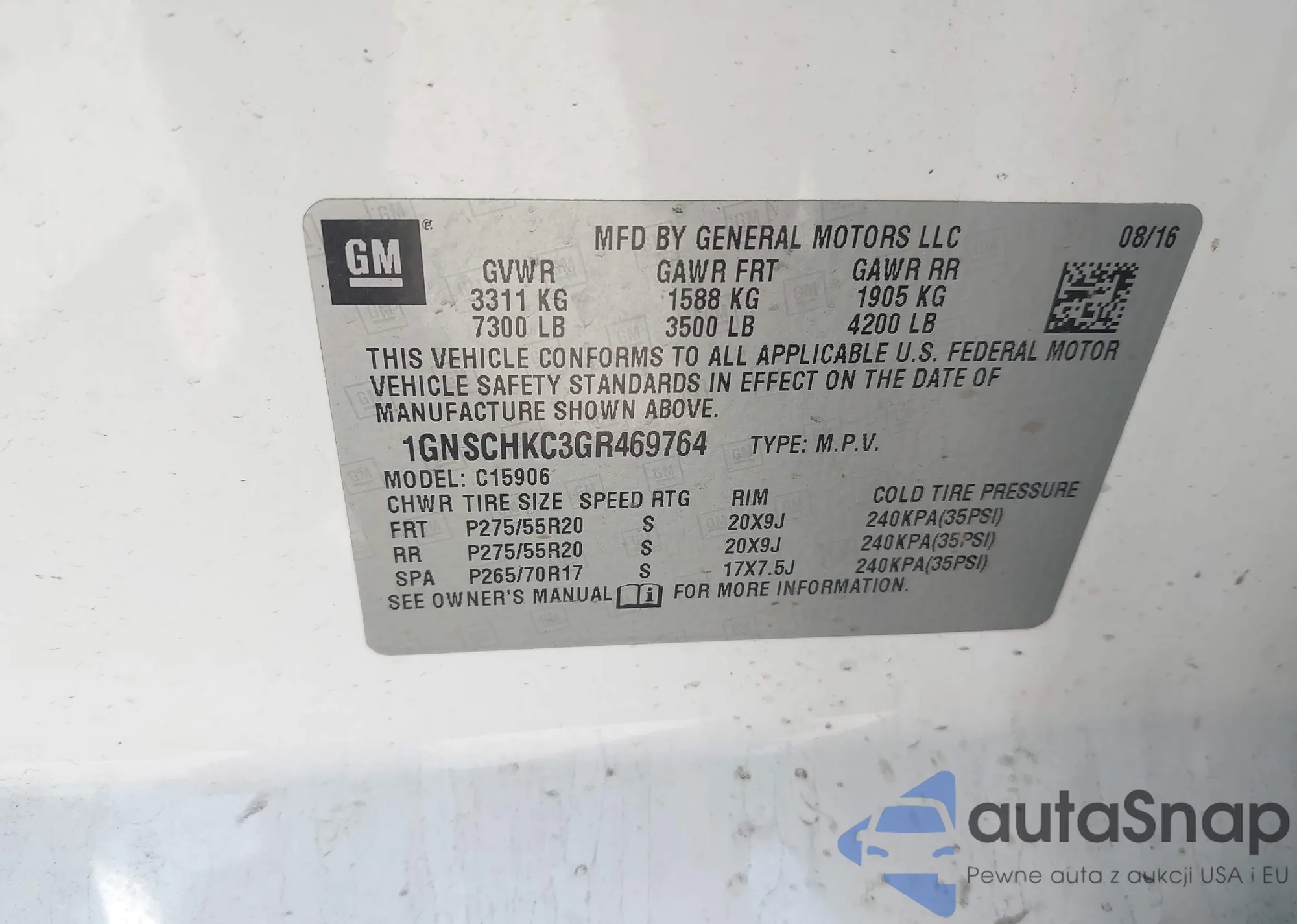 LOT: 41884832 VIN: 1GNSCHKC3GR469764
