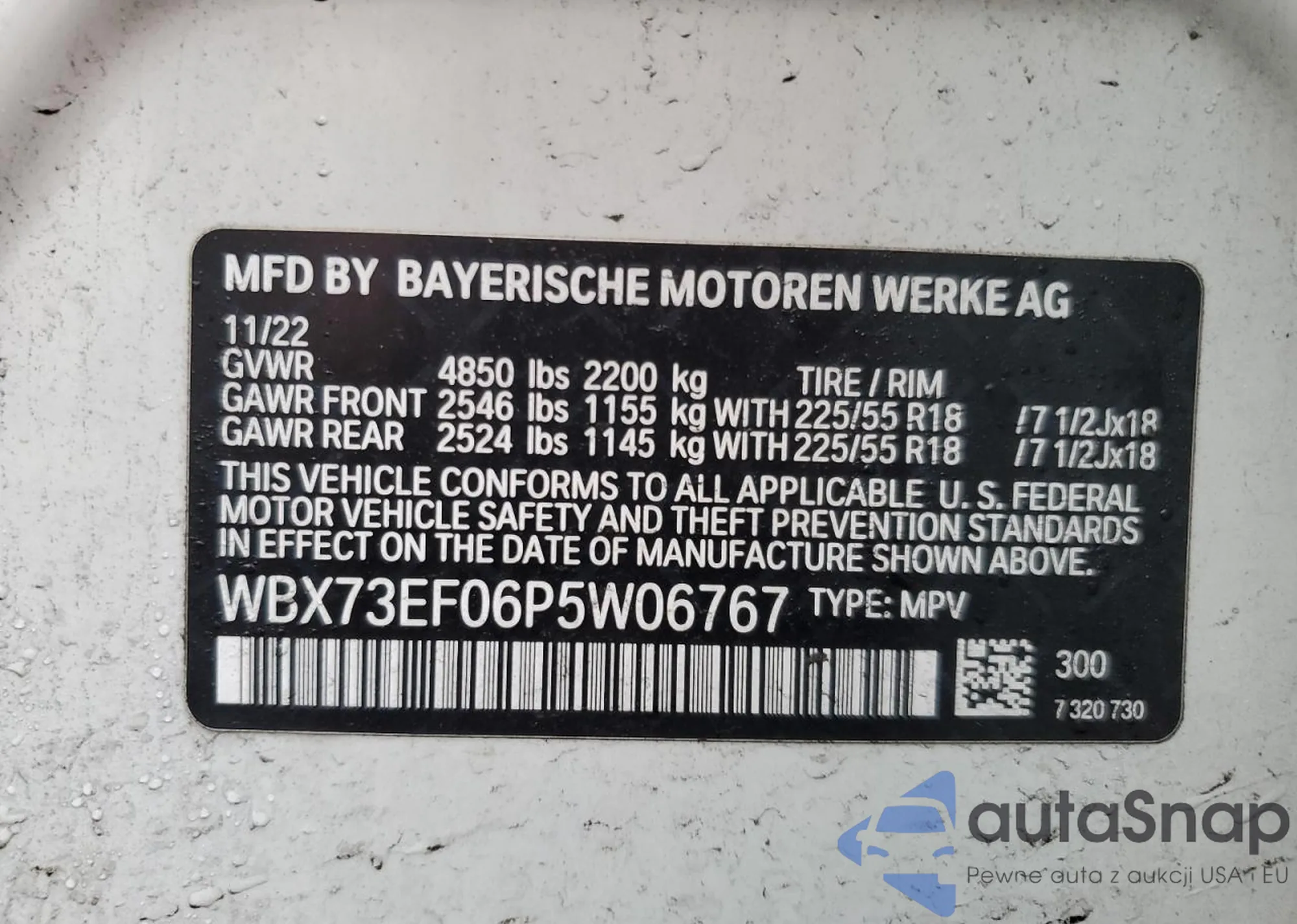 • VIN WBX73EF06P5W06767