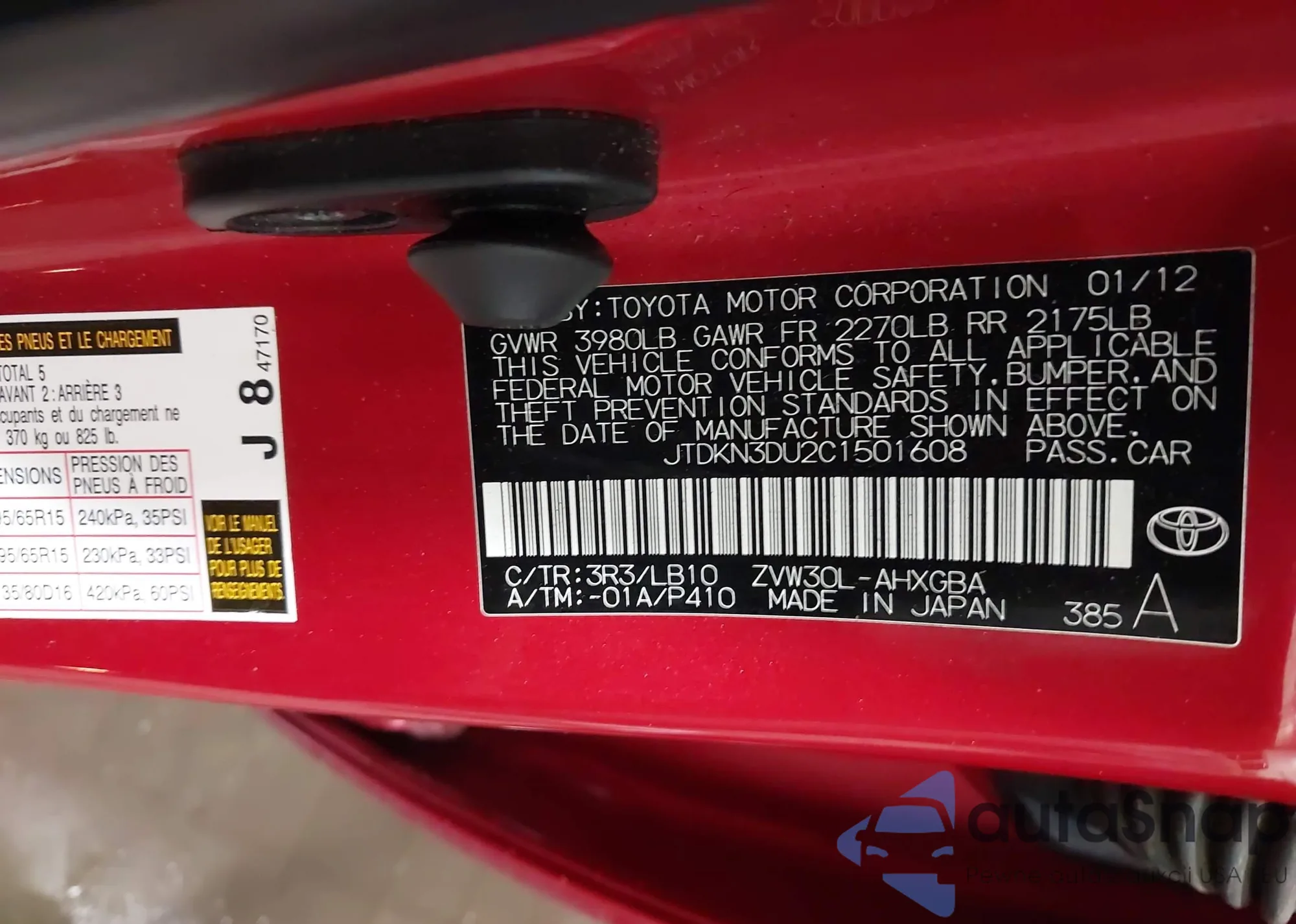 LOT: 42313910 VIN: JTDKN3DU2C1501608
