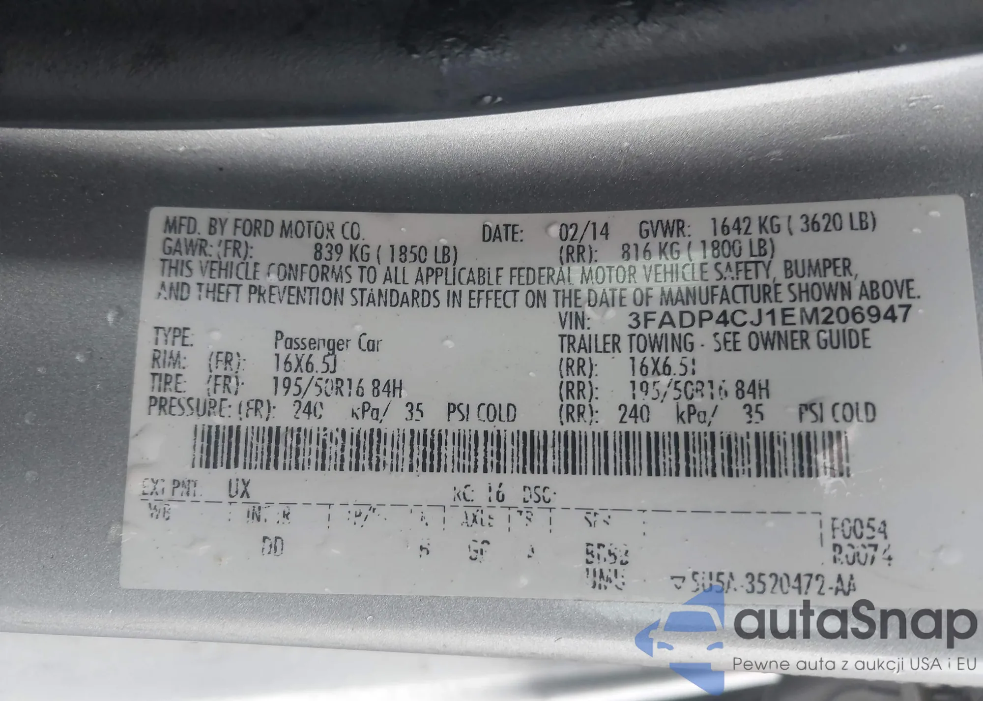 • VIN 1FAHP2KT9EG107862