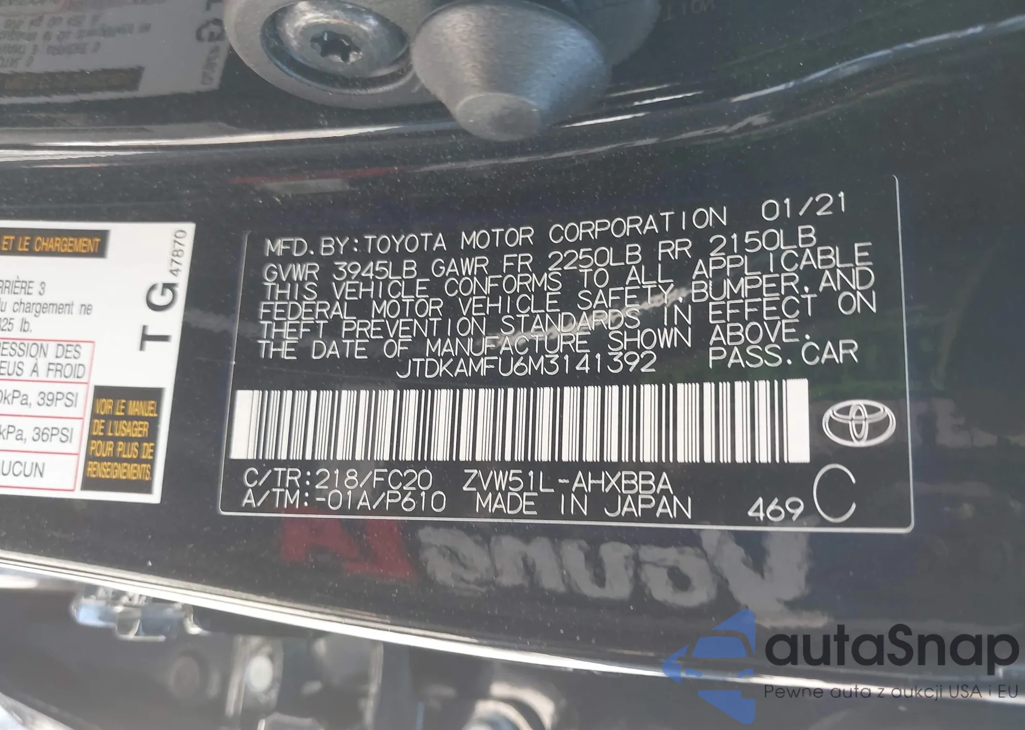LOT: 42317866 VIN: JTDKAMFU6M3141392