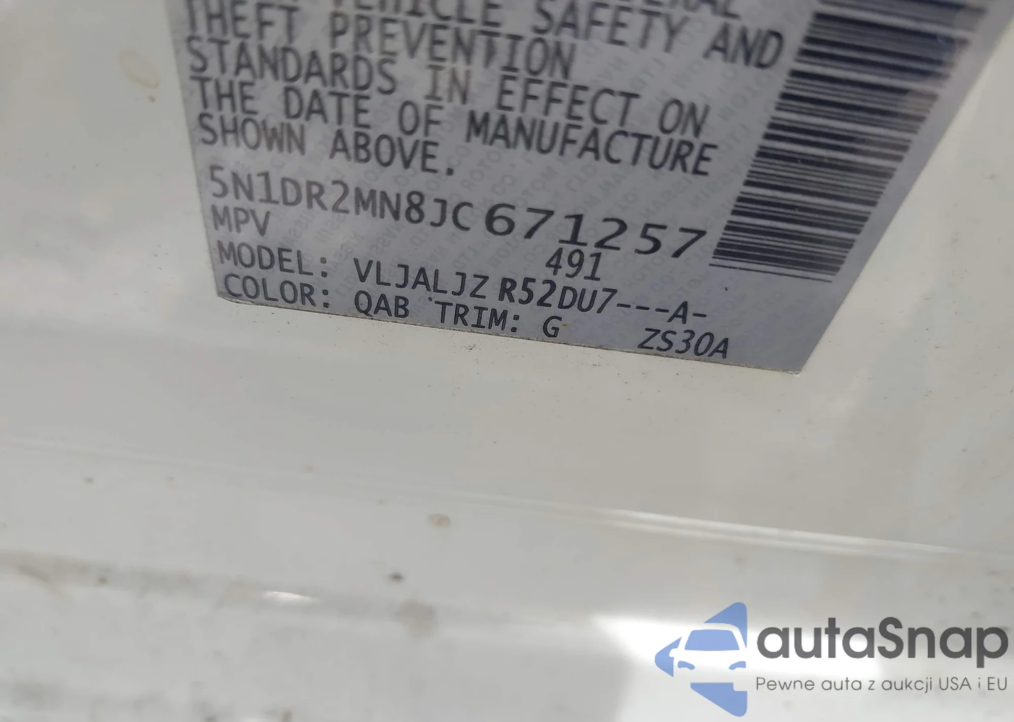 LOT: 42387713 VIN: 5N1DR2MN8JC671257