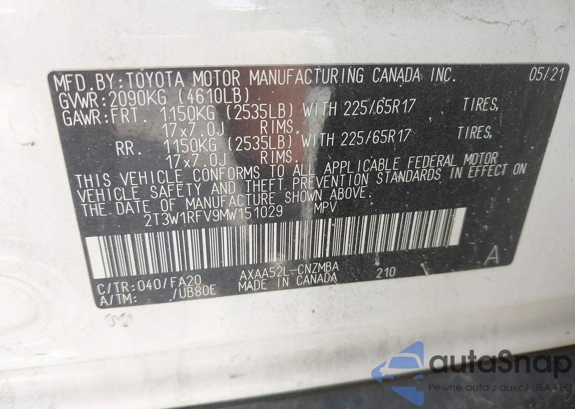 • VIN 2T3W1RFV9MW151029