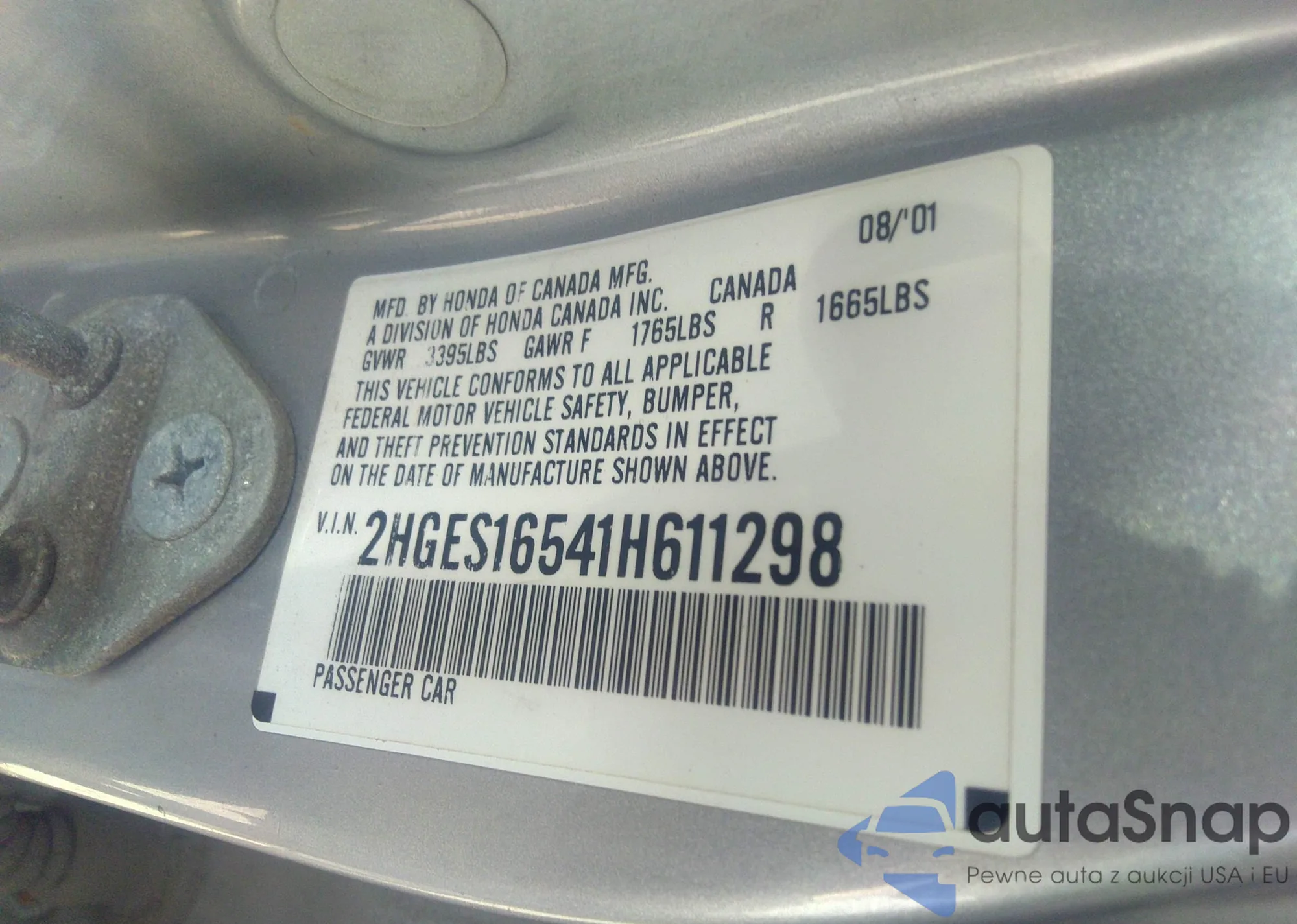LOT: 39536986 VIN: 2HGES16541H611298