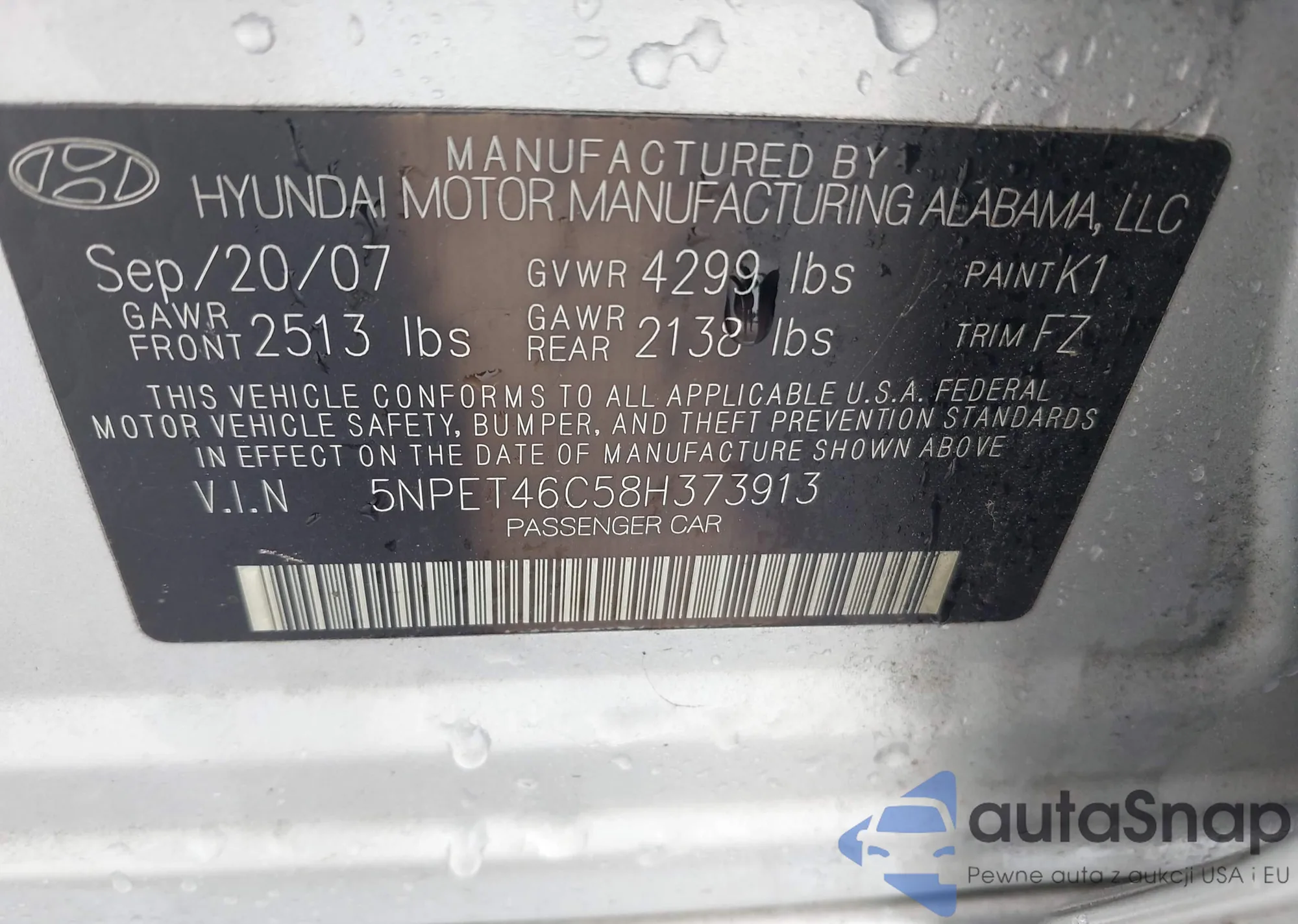 • VIN 5NPET46C58H373913