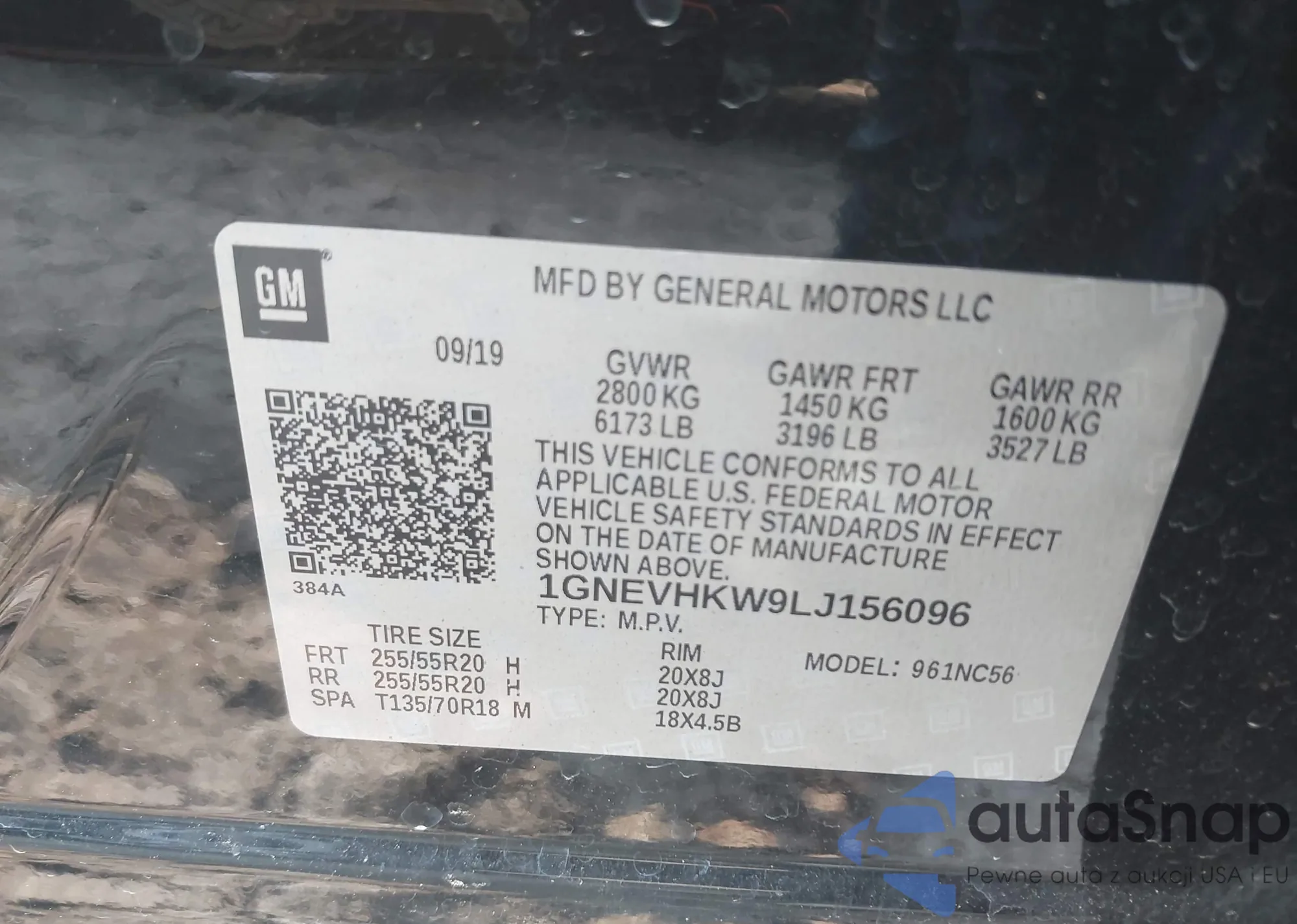LOT: 42407065 VIN: 1GNEVHKW9LJ156096