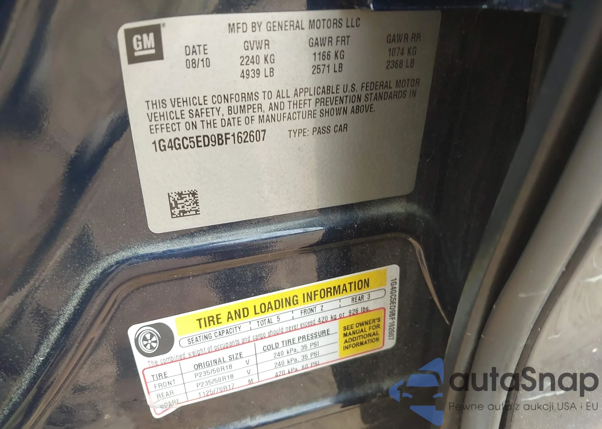 • VIN 1G4GC5ED9BF162607