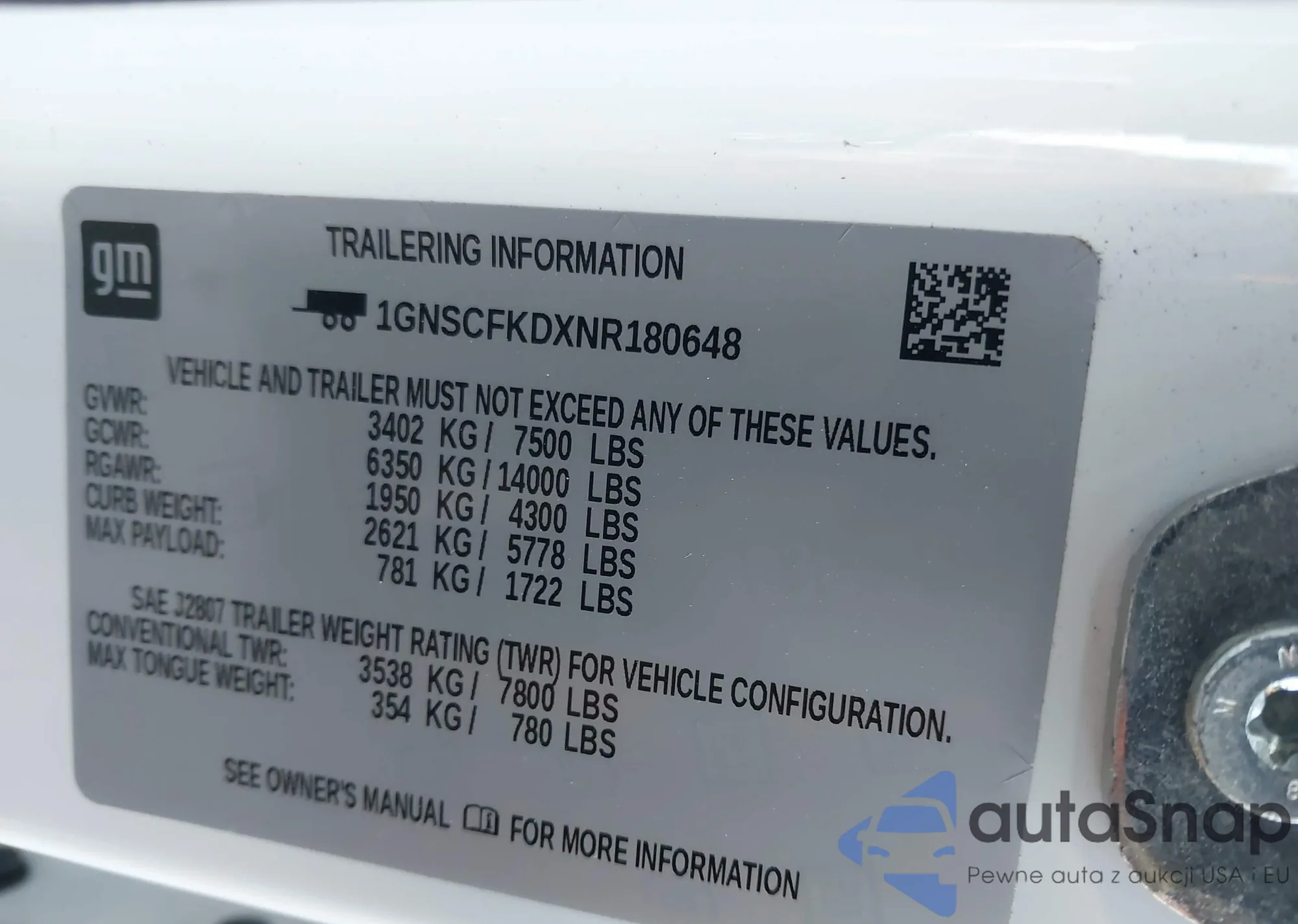 LOT: 41853881 VIN: 1GNSCFKDXNR180648