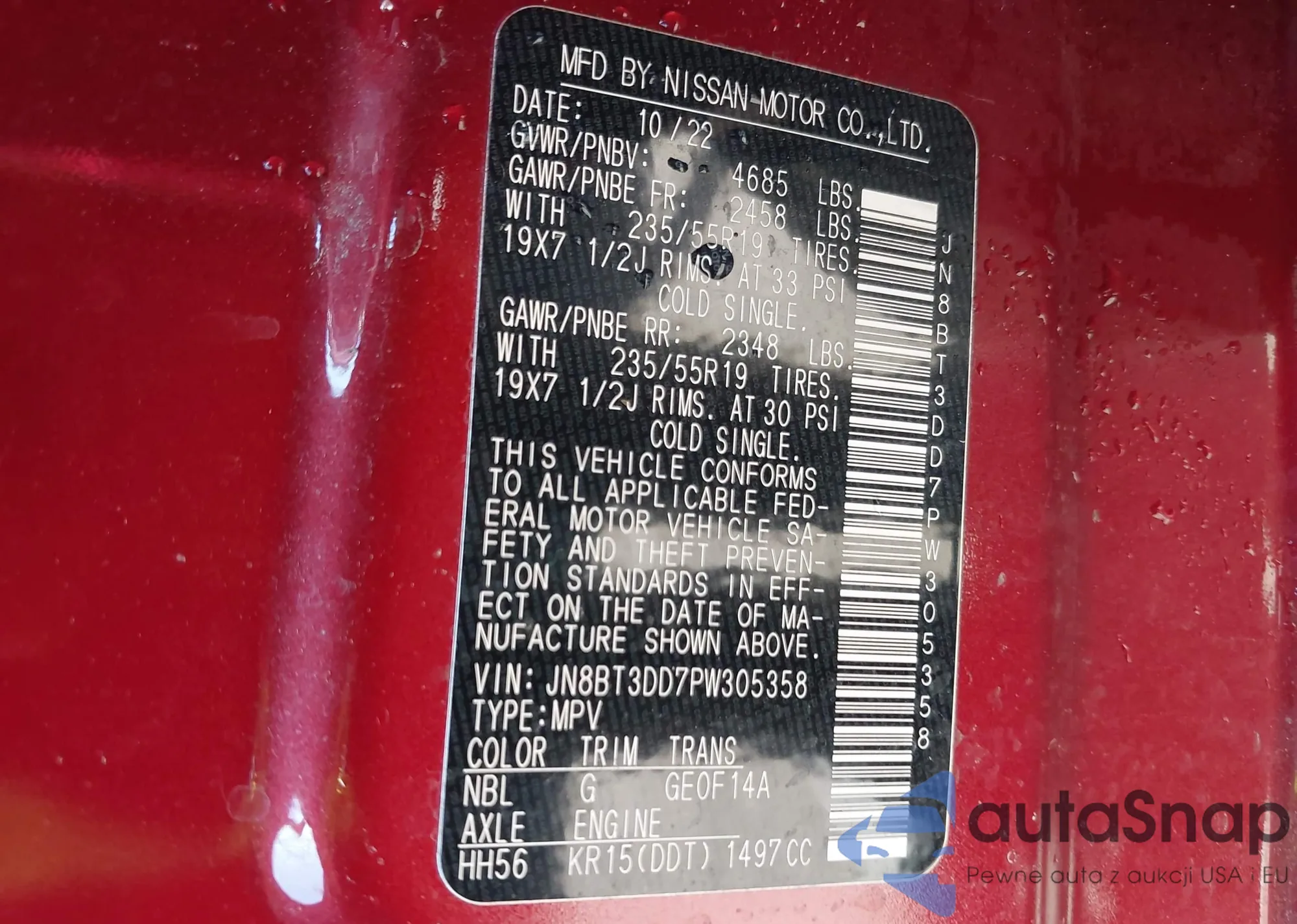 LOT: 42287907 VIN: JN8BT3DD7PW305358