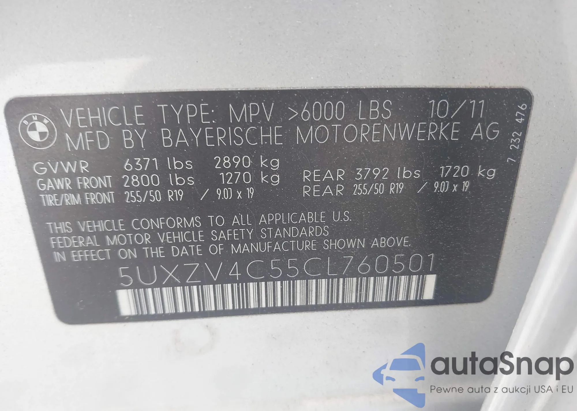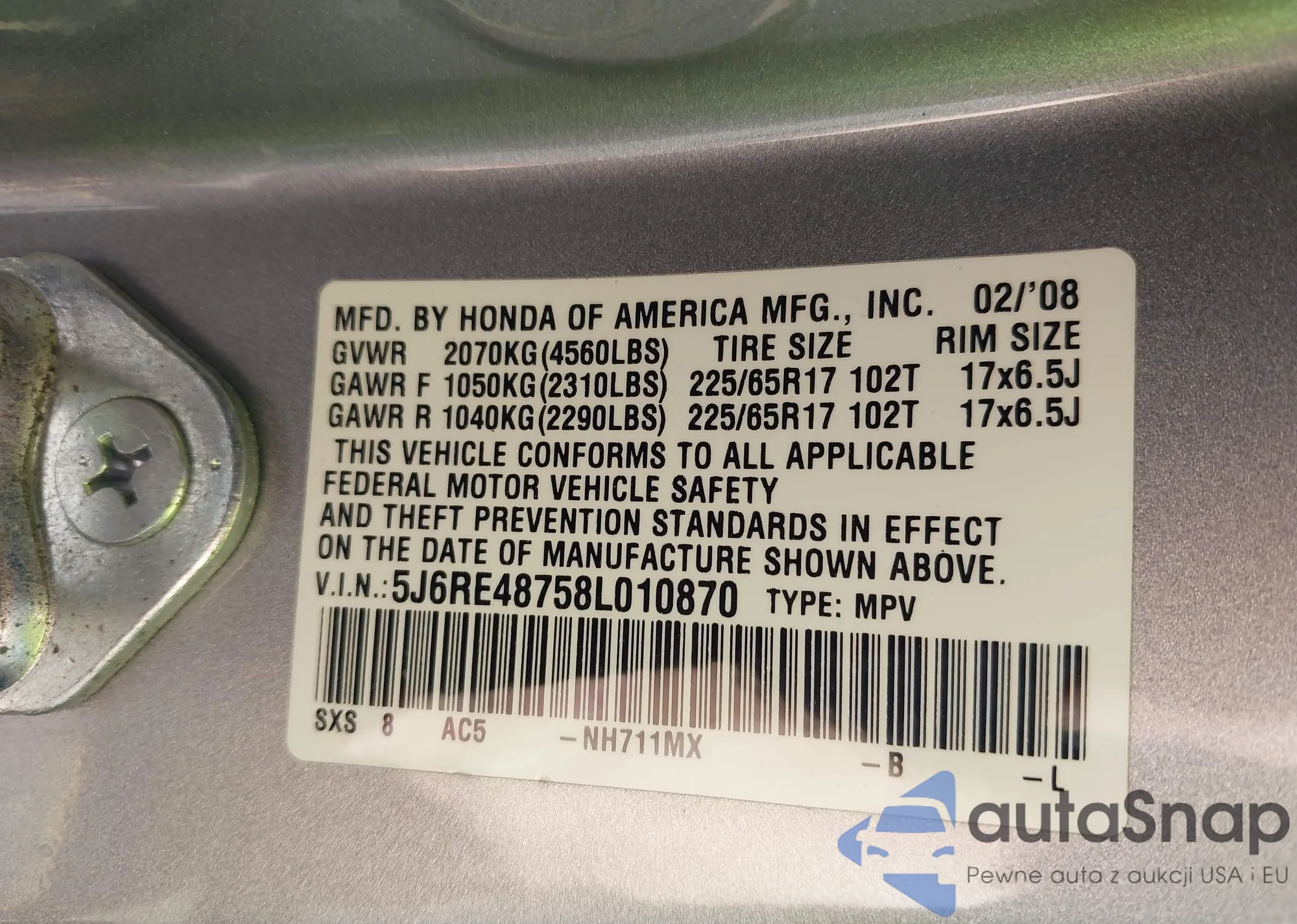 • VIN 5J6RE48758L010870