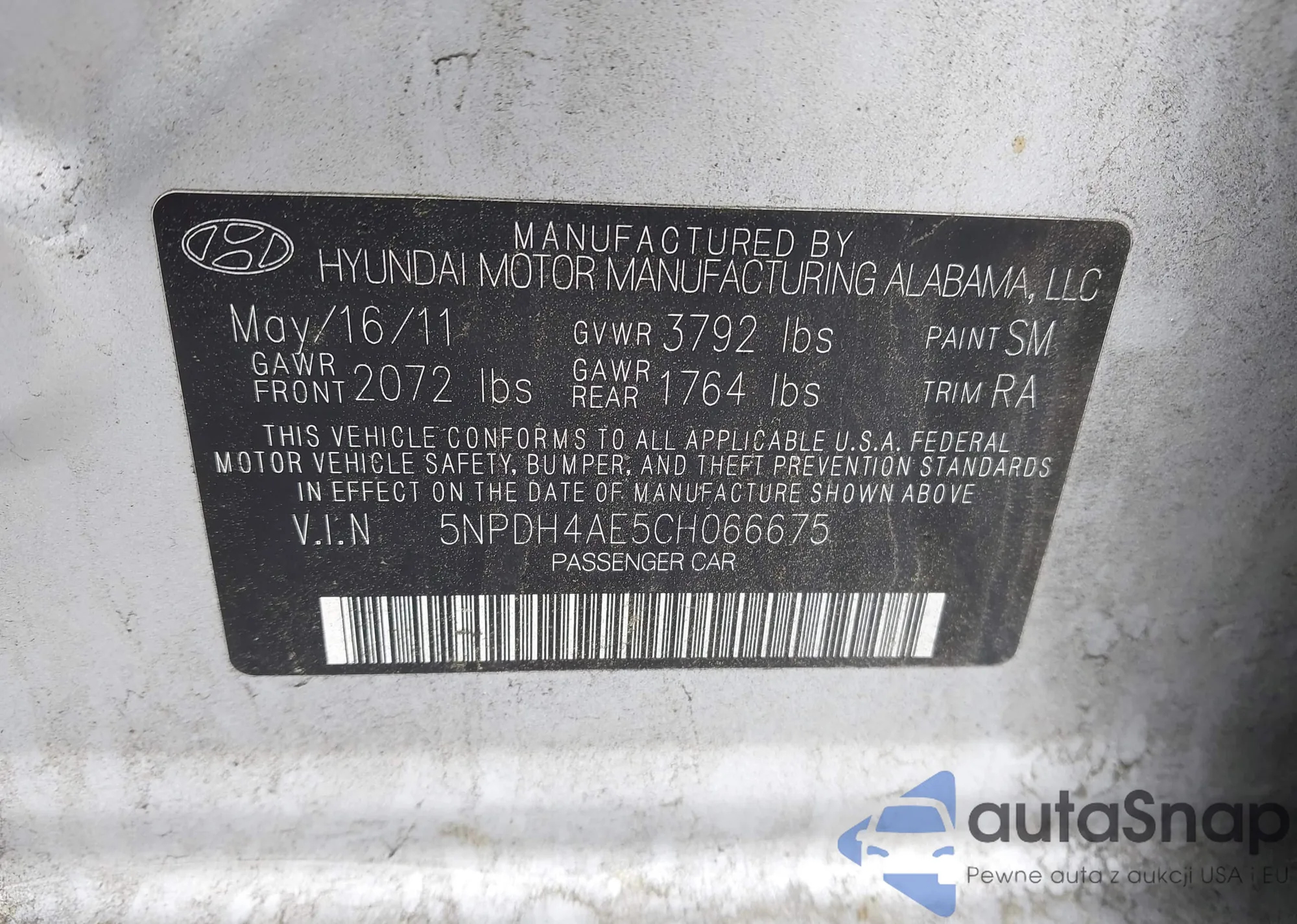 LOT: 42322478 VIN: 5NPDH4AE5CH066675