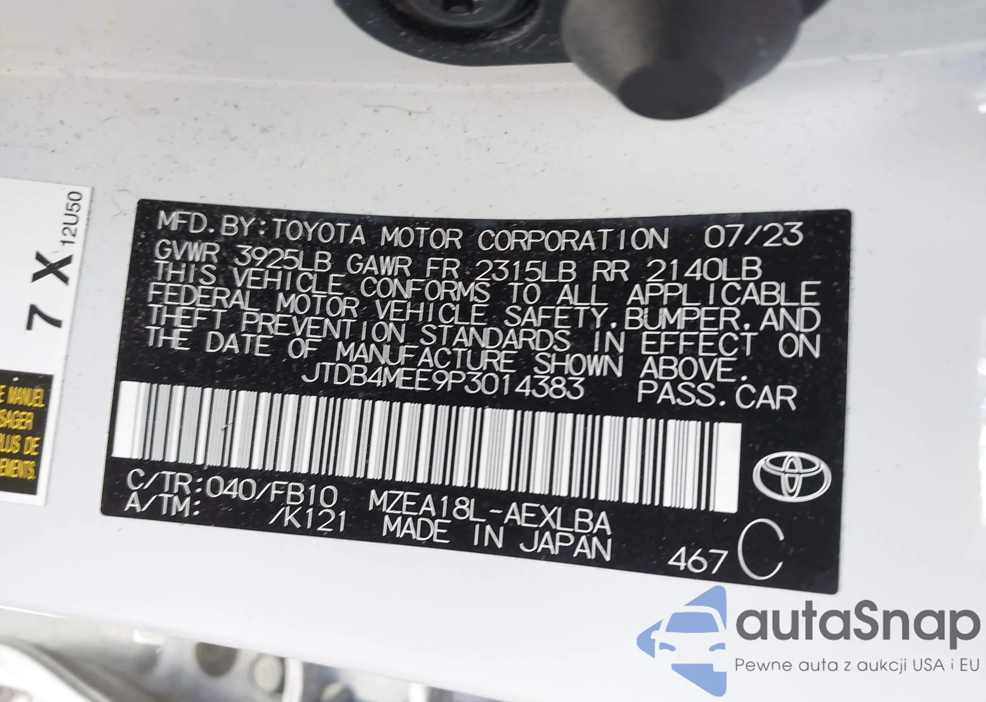 • VIN 19XFA1F39AE039273