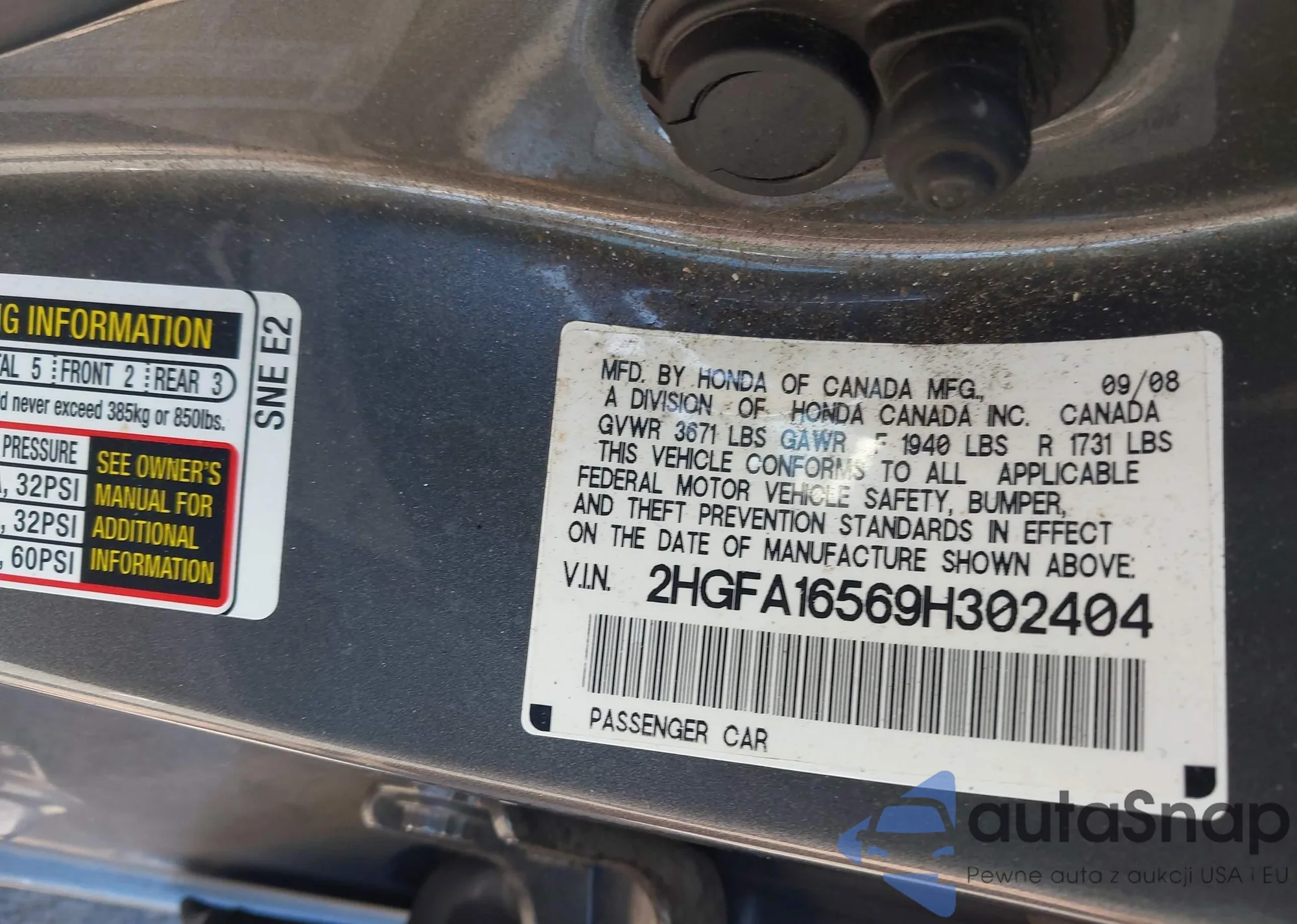 • VIN 2HGFA16569H302404
