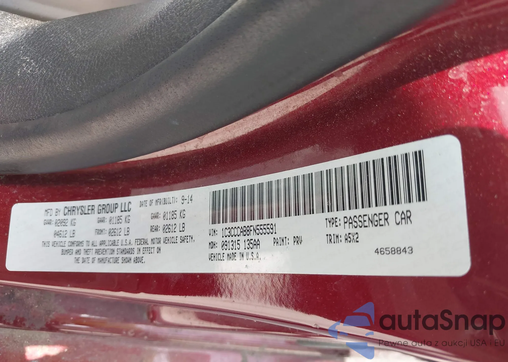 LOT: 42277127 VIN: 1C3CCCAB8FN555591