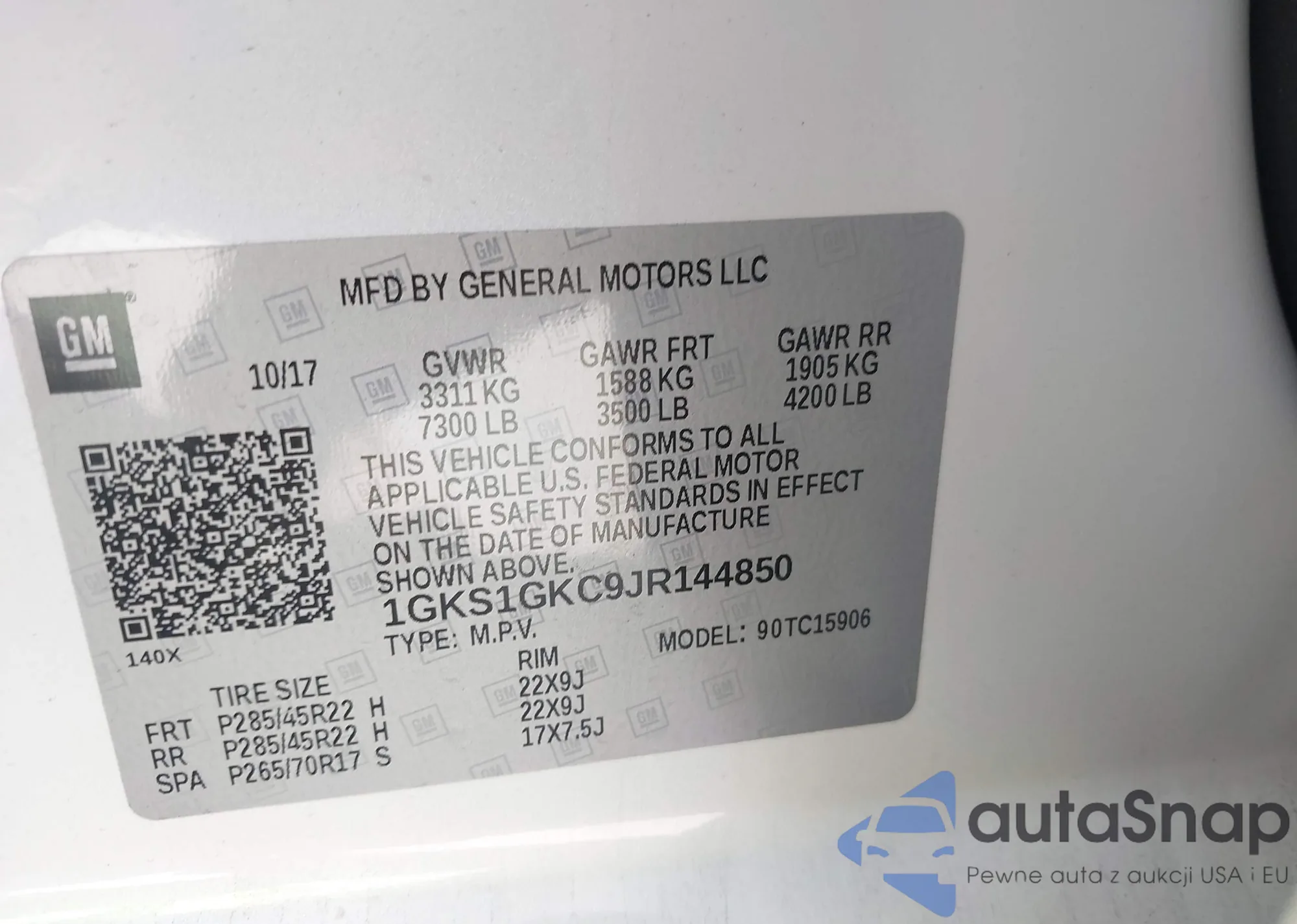 LOT: 42012660 VIN: 1GKS1GKC9JR144850