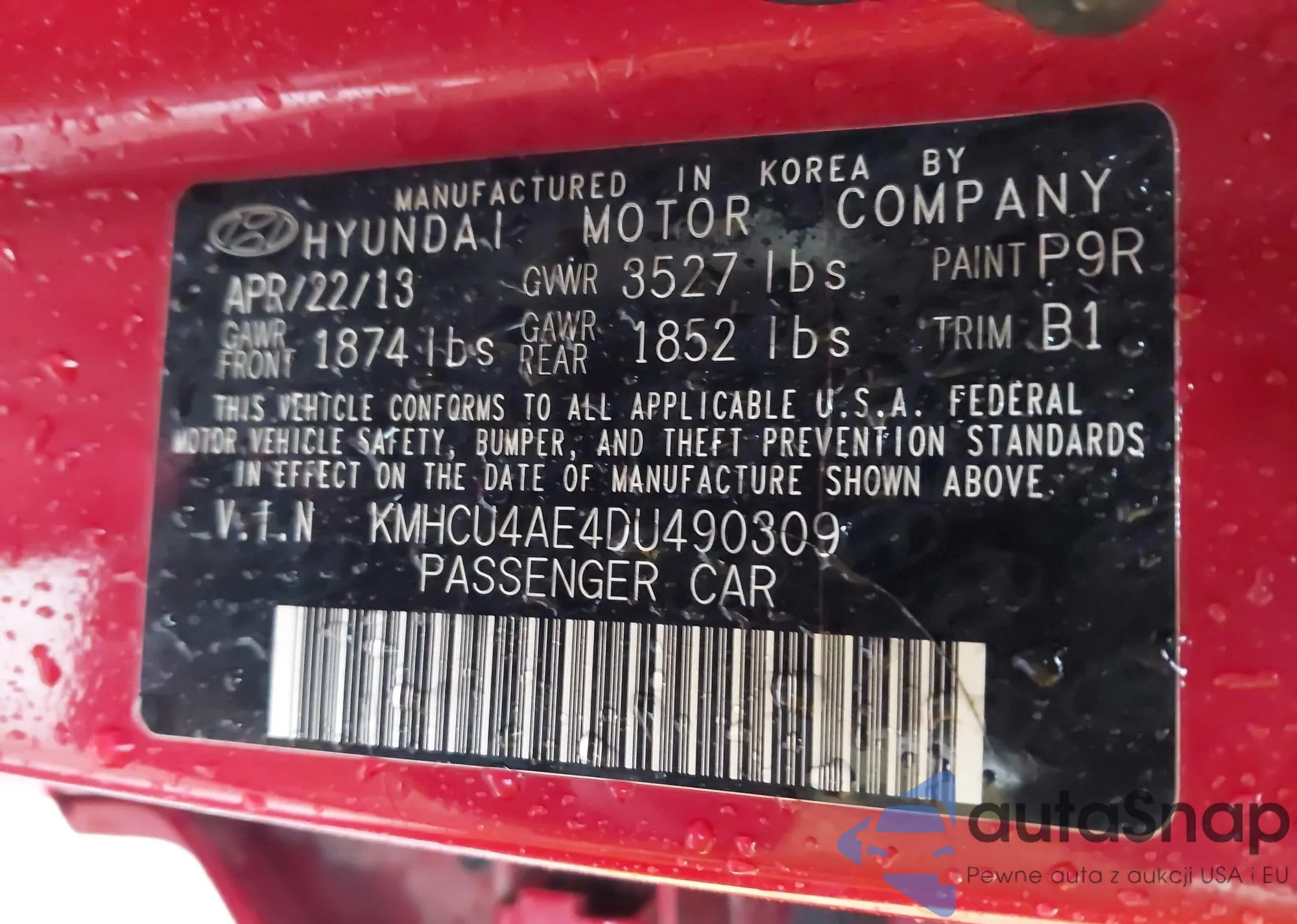 LOT: 42111310 VIN: KM8SMDHF2HU190509