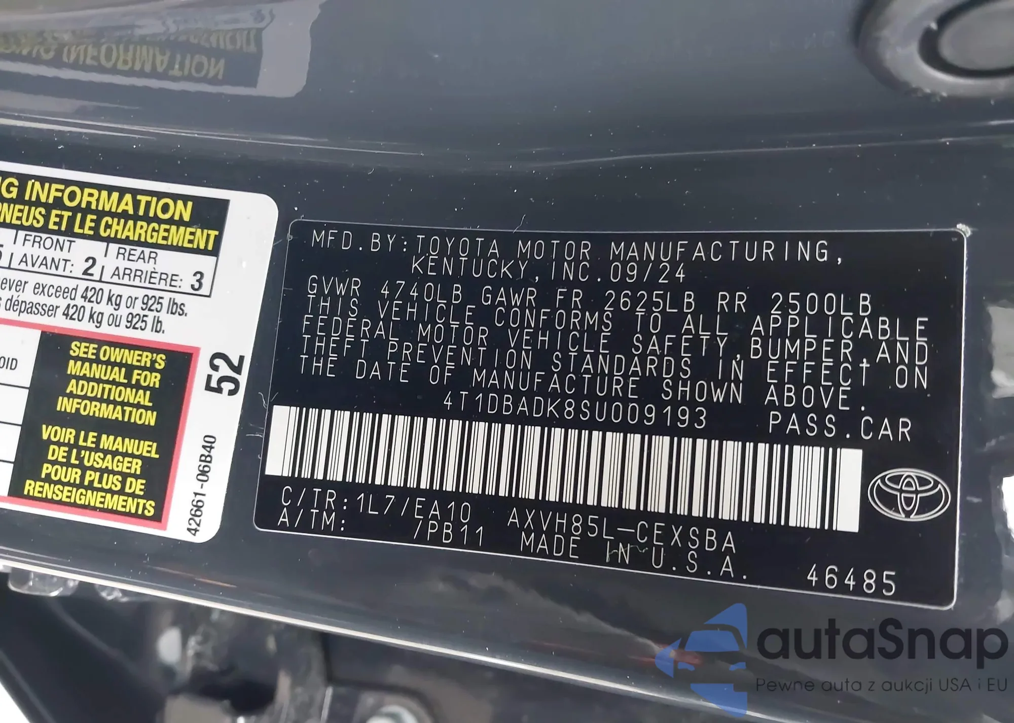 • VIN 4T1DBADK8SU009193