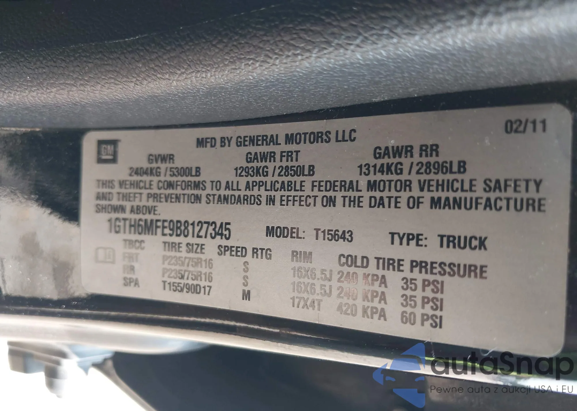 LOT: 42376770 VIN: 1GTH6MFE9B8127345