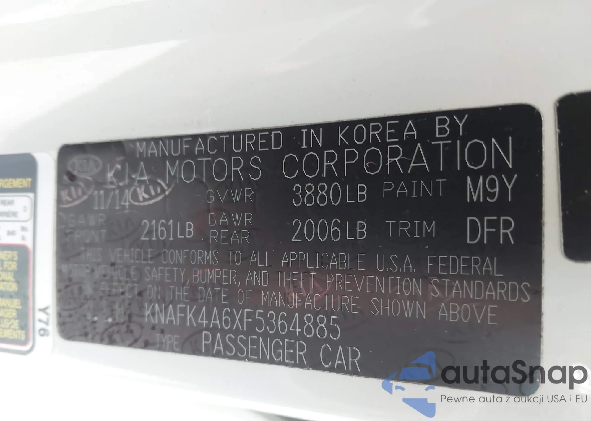 LOT: 42386019 VIN: KNAFK4A6XF5364885