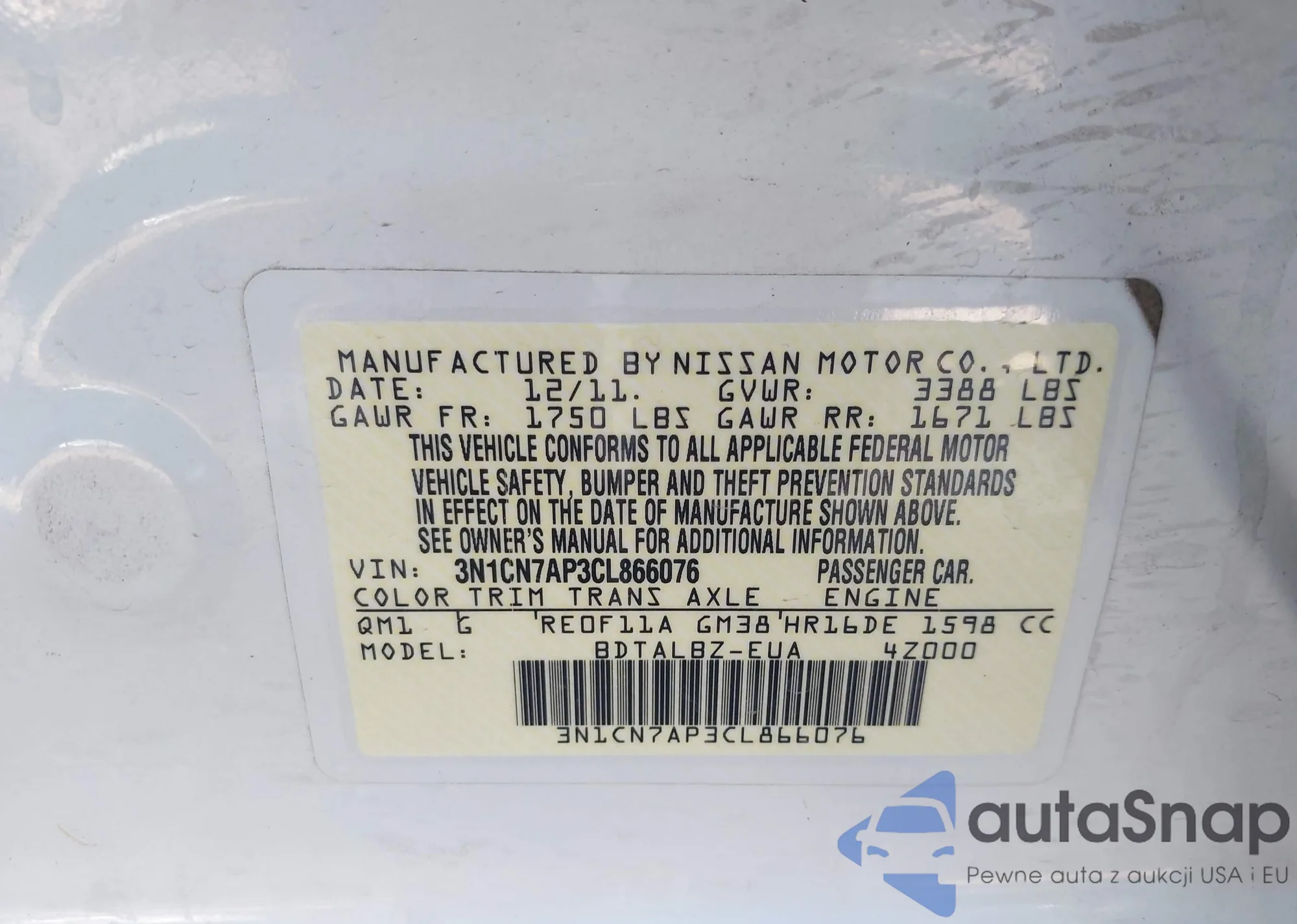 • VIN 3N1CN7AP3CL866076
