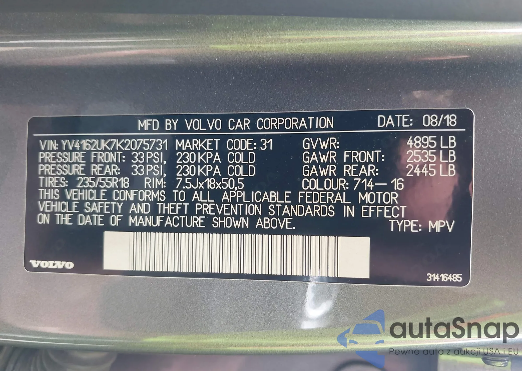 LOT: 42177465 VIN: YV4162UK7K2075731