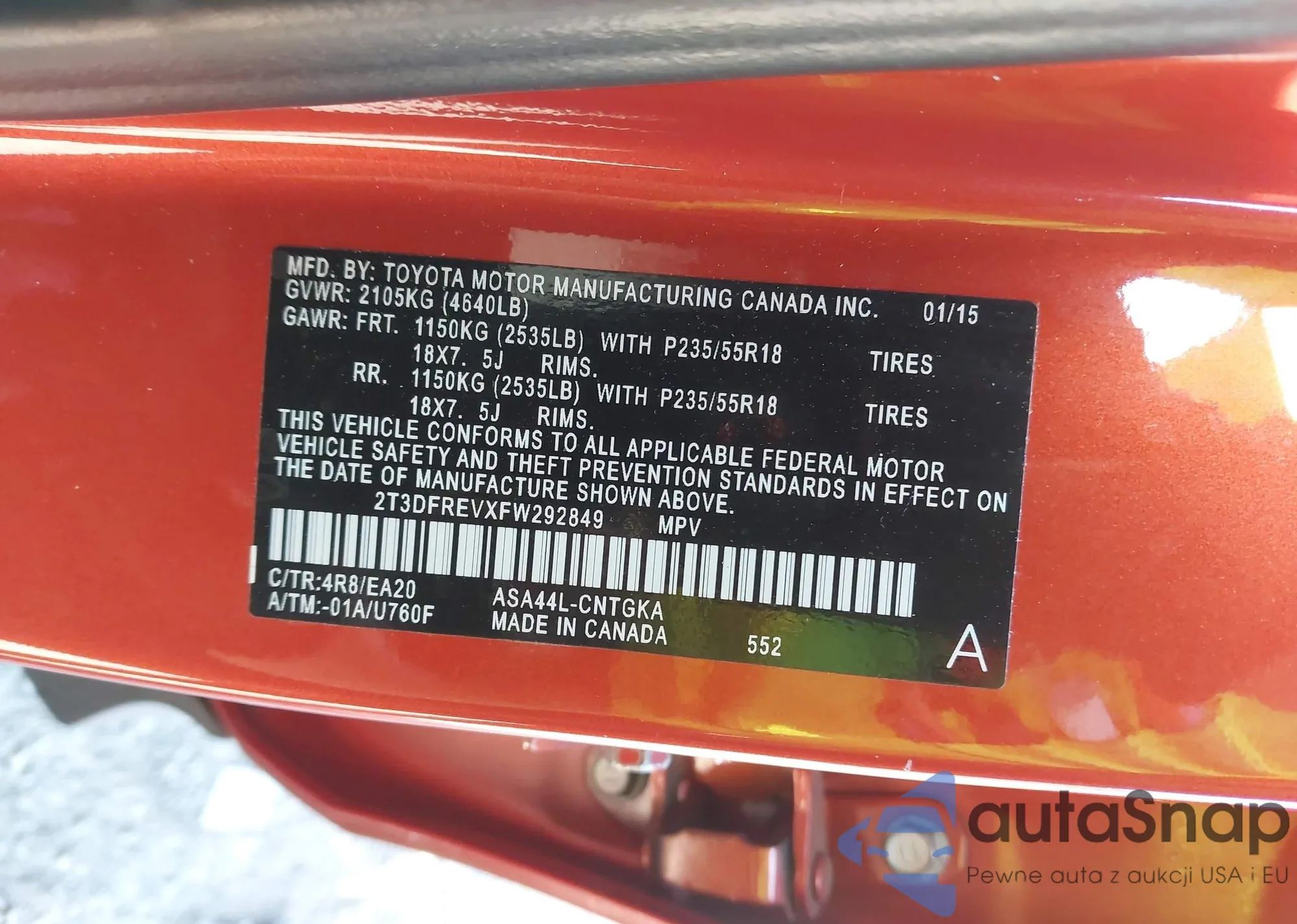 • VIN 2T3DFREVXFW292849