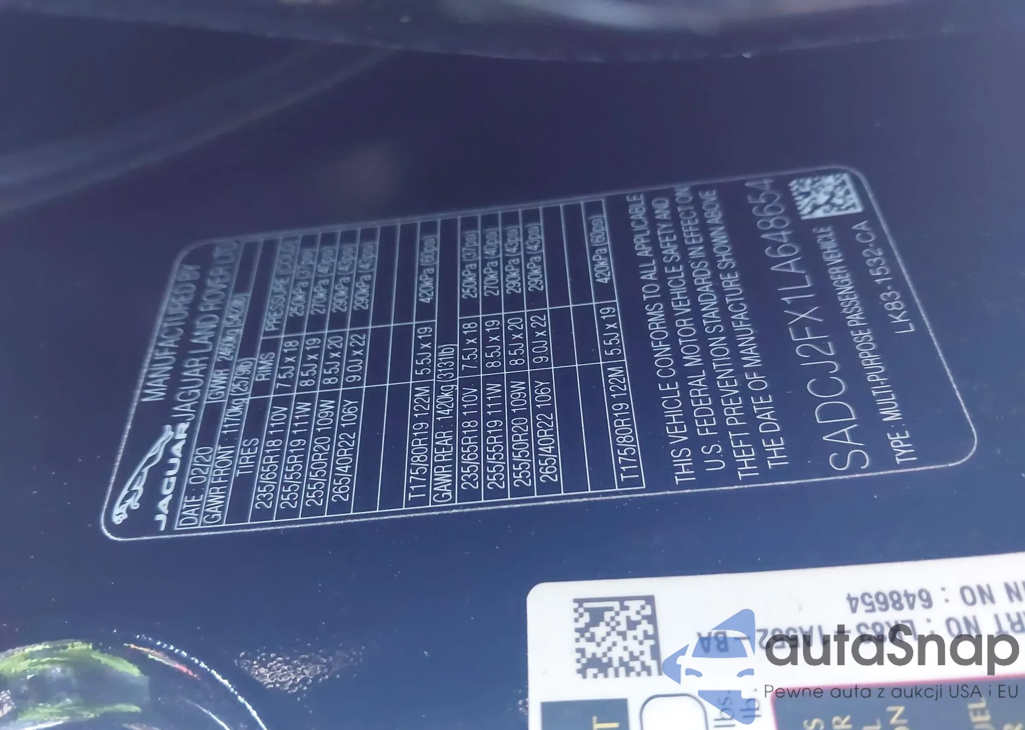 • VIN SADCJ2FX1LA648654