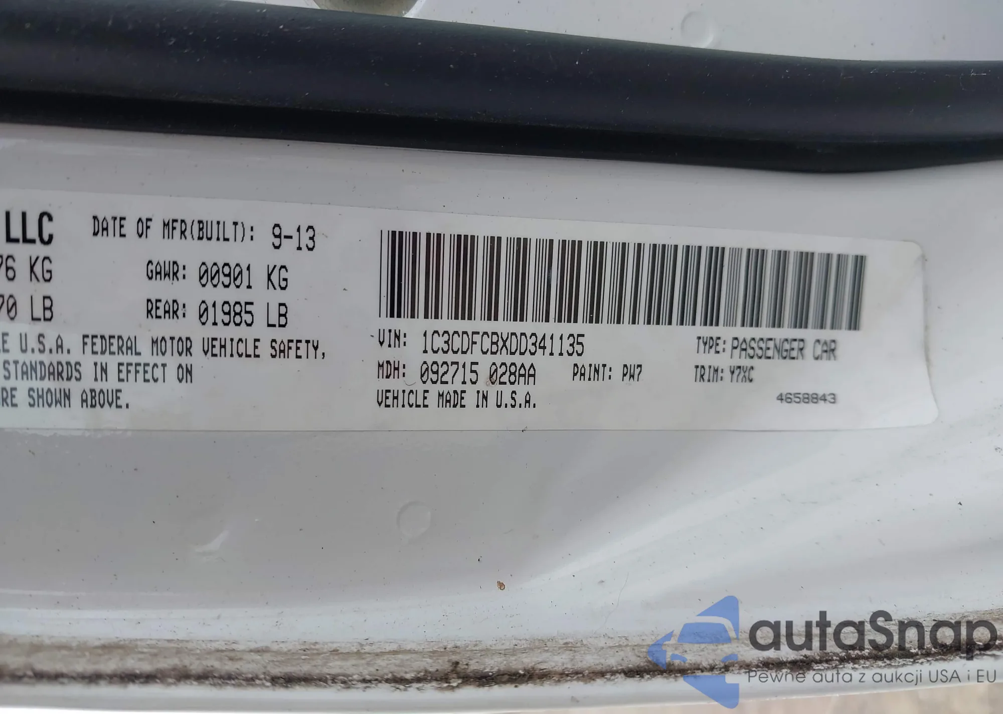• VIN 1C3CDFCBXDD341135