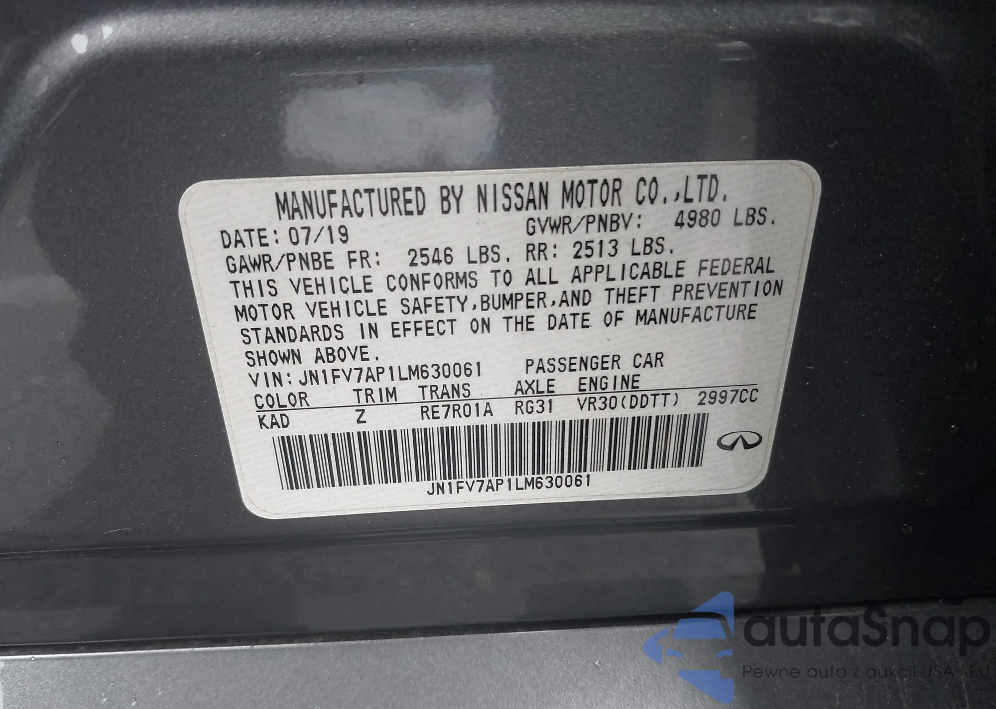 LOT: 41736479 VIN: JN1FV7AP1LM630061