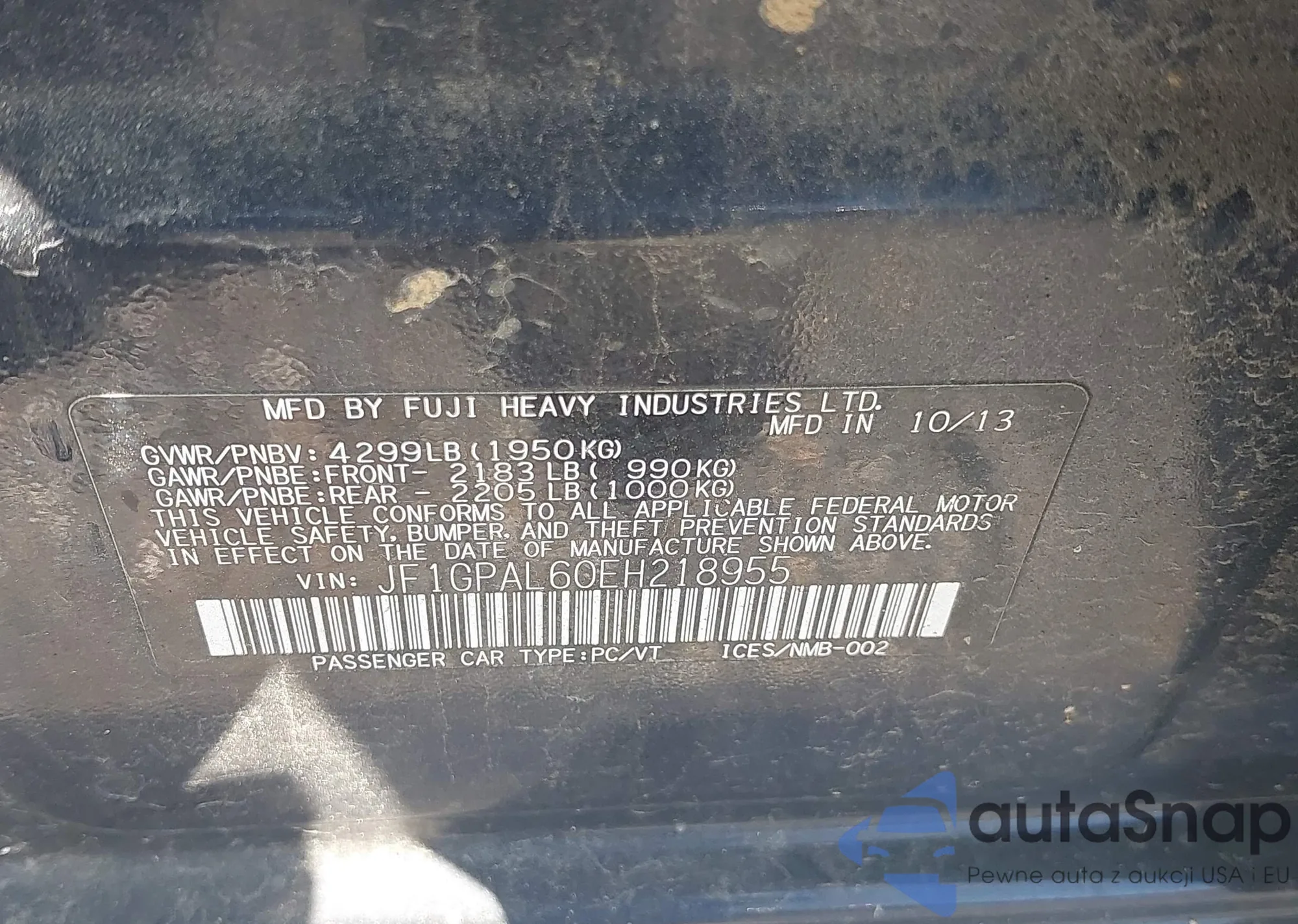 • VIN JF1GPAL60EH218955