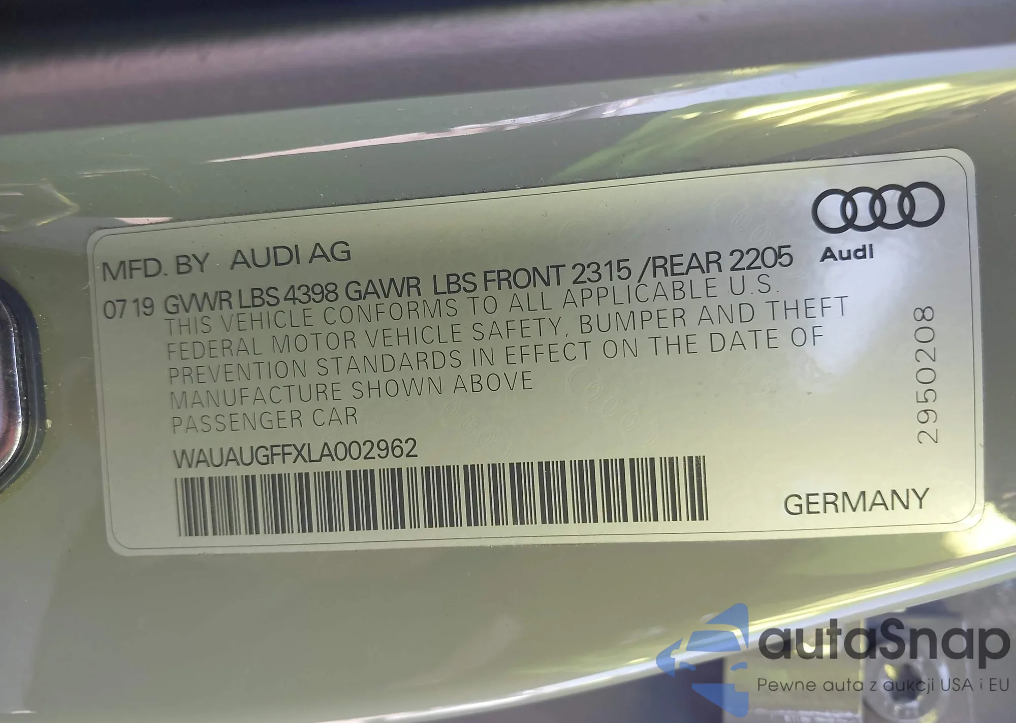 LOT: 42132695 VIN: 5XXGU4L1XKG373613