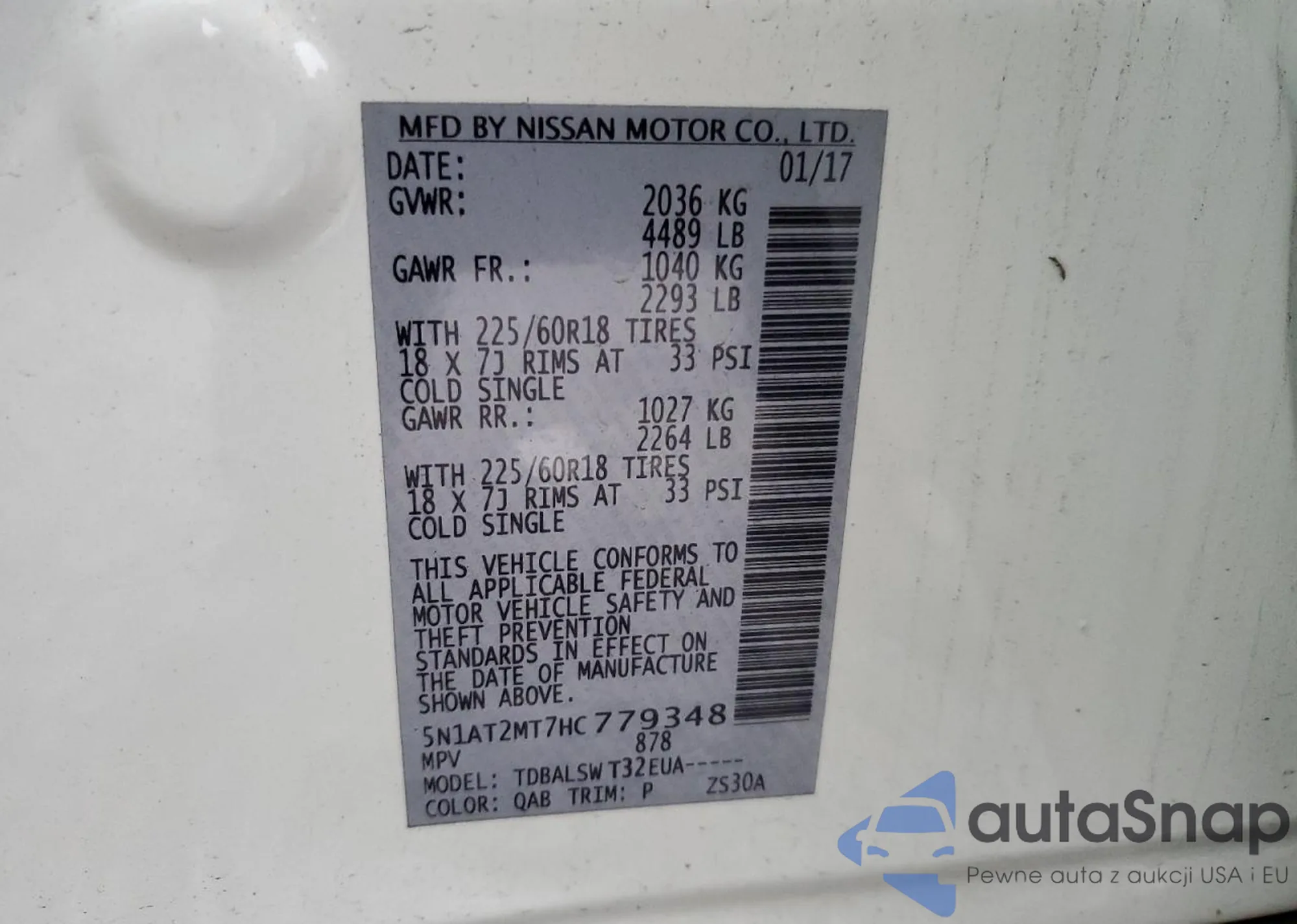 • VIN 5N1AT2MT7HC779348